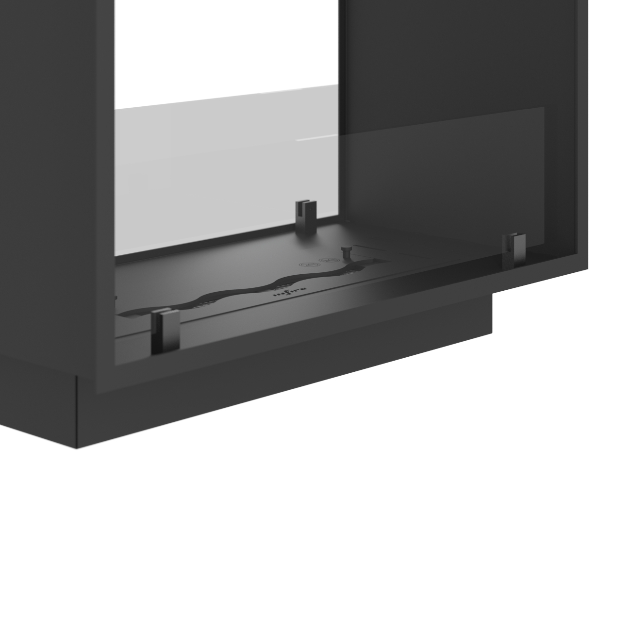 Durch das vertikale Design erstreckt sich das Feuer über die gesamte Höhe des Kamins und wird durch das hochwertige Optiwhite-Sicherheitsglas (8 mm gehärtetes Glas, 2 Stück, je 660 mm x 125 mm) stabilisiert und geschützt. Die Kombination aus schlankem schwarzen Rahmen und der wellenförmigen Brennerkonstruktion erzeugt eine dynamische 3D-Flammenoptik, die von beiden Seiten perfekt sichtbar ist.