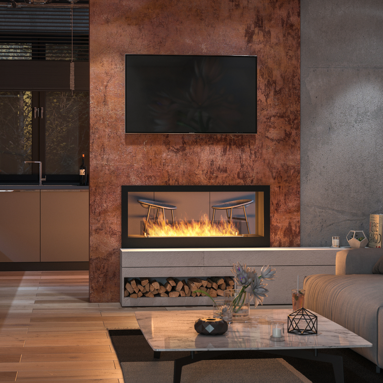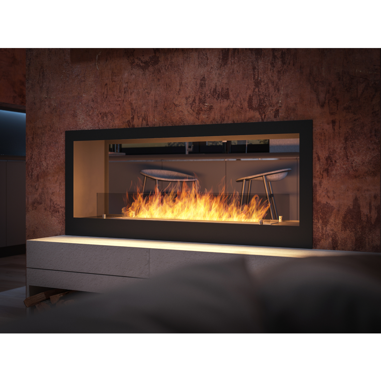 Der 2SIDE 1200 Bioethanolkamin ist die perfekte Wahl für alle, die eine stilvolle und umweltfreundliche Feuerstelle suchen. Dieser hochwertige Einbaukamin ist speziell für den Einbau in eine Wand zwischen zwei Räumen konzipiert und dient als eleganter Raumtrenner. Dank der zweiseitigen Bauweise genießen Sie die faszinierende Flammenoptik aus beiden Räumen – ein Highlight für jedes moderne Wohnambiente.