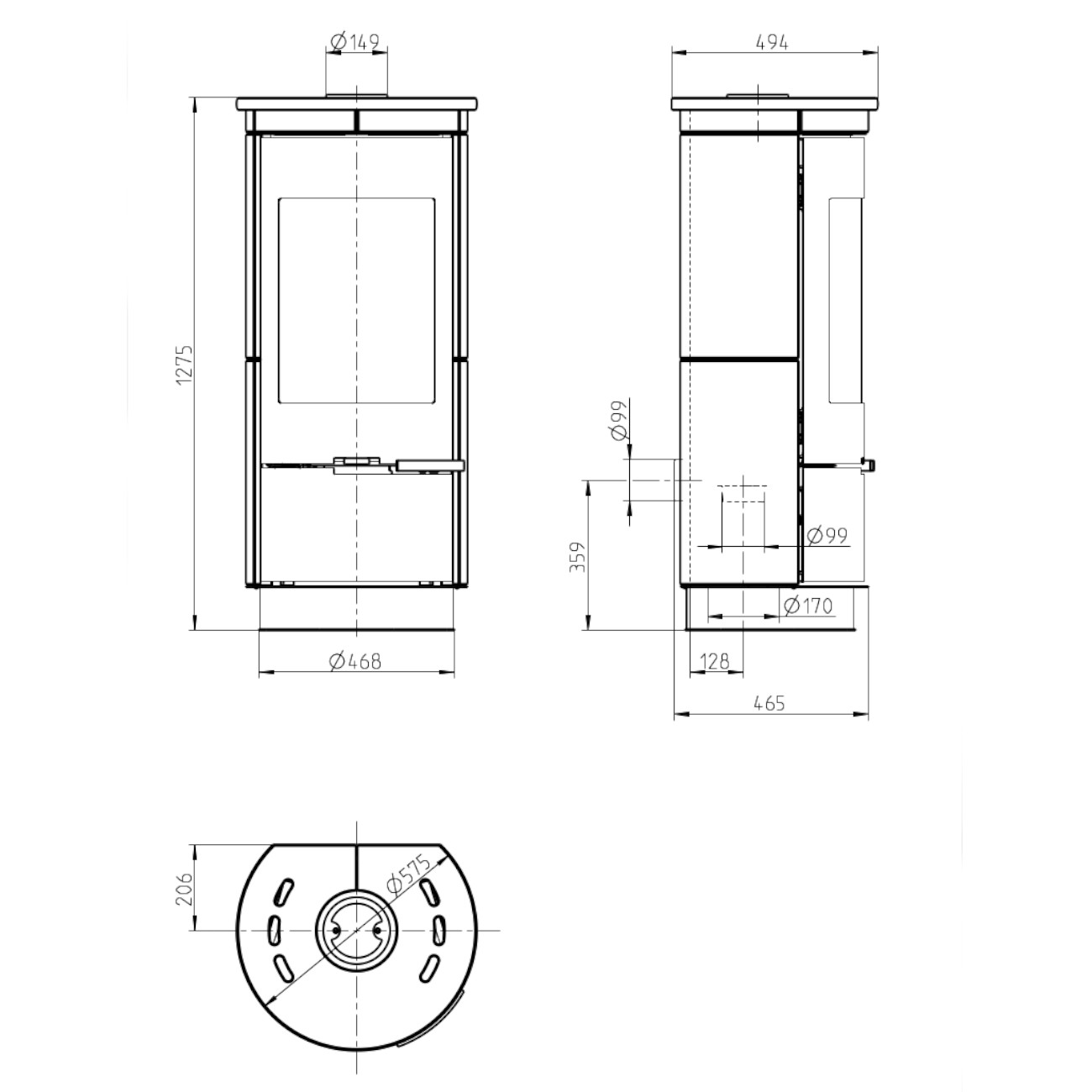 Die 6 cm starken Serpentinosteine schmiegen sich sanft an den Korpus des Delia Kaminofens und bieten eine hohe Wärmespeicherung - Serpentino Stein mit zusätzlichen Speichersteinen. Seine gebogene große Sichtscheibe und die moderne Feuerung bringt Ihnen die Freude am Kaminfeuer ins Haus. Der Brennraum des Kaminofens ist mit modernen Vermiculite ausgekleidet und der Brennraumboden mit einer hochwertigen Gussmulde. Vorteile: Rahmenlose Designscheibe - Die Glasscheibe befindet sich vor dem Rahmen, dadurch wirkt die Glasscheibe größer und der Kamineinsatz eleganter Serpentino Steine 6 cm Stärke - diese Steine funktionieren wie Speichersteine, speichern die Wärme und geben diese noch über mehrere Stunden ab Mit Speichersteine - inkl. 3 Ringe, Gesamtgewicht ca. 30 kg. Optional, bei Abgang oben, 2 zusätzliche Speicherringe möglich (20 kg). Massive Gussmulde Kühler Griff - der Griff bleibt im Betrieb anfassbar ohne Handschuh Große, runde Sichtscheibe MERKMALE Energieeffizienzklasse: A+; Nennwärmeleistung: 7 kW; Raumheizvermögen (abhängig von der Hausisolierung): 98 bis 180 m³; Korpus Farbe: Schwarz; Verwendete Materialien: Serpentinostein; Form des Kamins: Rund; Scheibenform: Runde Scheibe; MASSE DES KAMINS Höhe: 175,6 cm; Breite: 57,5 cm; Tiefe: 49,4 cm; Gewicht: 277 kg + 30 kg; SCHEIBENMASS Höhe: 49 cm; Breite: 41 cm; TÜRMASSE Höhe: 80 cm; Breite: 59 cm; BRENNRAUMMASSE Höhe: 46 cm; Breite: 35 cm; Tiefe: 30 cm; RAUCHROHR-ANSCHLUSSDETAILS: Durchmesser: 150 mm; Position Rauchrohranschluss: Oben oder Hinten (gegen Aufpreis); Abstand vom Boden zur Mitte des hinteren Ausgangs: 137,0 cm oder 162,75 cm; VERBRENNUNGSLUFT TYP: Externe Luftzufuhr / Raumluftunabhängiger Betrieb: Ja, optional anschließbar, mit der Externen Luftzufuhr können Sie den Ofen mit Luft aus einem Nebenraum oder von außen beheizen. Dies wirkt sich positiv auf das Raumklima aus. Ermöglicht auch den Anschluss einer elektronischen Verbrennungsluft Regelung; Durchmesser Anschluss externe Luftzufuhr: 100 mm; Position Anschluss externe Luftzufuhr: Hinten und Unten / Boden / Unterhalb; Höhe Anschluss externe Luftzufuhr: 36 cm; DIBt Zulassung: Nein - jedoch teilweise möglich in Kombination mit externer Luftzufuhr und einen Sicherheitsschalter mit DIBT Zulassung; BRENNSTOFFANGABEN: Zulässige Brennstoffe: Scheitholz; Holzbriketts; Braunkohlebriketts; Max. Scheitholzlänge: 30 cm; 35 cm (Hochkant); Max. Aufgabemenge: 2,3 kg; AUSSTATTUNG: Scheibenspülung: Ja, klare Sicht auf das Feuer - Luftstrom vor der Glasscheibe, dadurch wird die Verschmutzung der Scheibe minimiert; Wärmespeicherfähigkeit: Ja mit Natursteinen und Speicherbeton, die Wärme wird noch über mehrere Stunden abgegeben, nachdem das Feuer längst erloschen ist. Dies ist möglich durch die Natursteine, die wie ein Akku funktionieren; Doppelt verriegelte Tür: Ja, die Tür wird an zwei Punkten verriegelt und liegt somit besonders dicht an den Ofenkorpus an; Ein-Regler-Steuerung: Ja, die gesamte Luftzufuhr des Ofens wird über einen Regler einfach gesteuert; Für Dauerbetrieb geeignet (24 Std. Betrieb): Ja; Holzfach: Nein; Ascherost und Aschekasten: Ja; Brennraum Auskleidung: Vermiculite; Brennraumboden aus Gusseisen; Automatische Verbrennungsluftregelung: Nein; Luftströme: Primärluft; Sekundärluft; Rahmenlose Designscheibe: Die Glasscheibe befindet sich vor dem Rahmen, dadurch wirkt die Glasscheibe größer und der Kamin eleganter; SICHERHEITSABSTÄNDE ZU BRENNBAREN MATERIALIEN: Hinten: 20 cm; Seitlich: 45 cm; Vorne: 80 cm; DATEN FÜR DEN SCHORNSTEINFEGER: Bauart A1 - selbstschließende Feuerraumtür (mehrfache Belegung des Schornsteins): Ja; Bundes-Immissionsschutzverordnung (BImSchV): 1. Stufe erfüllt; 2. Stufe erfüllt; Art. 15a B-VG (Österreich): Ja; VKF-Schweiz: Erfüllt die Anforderung; Wirkungsgrad (Energieeffizienz): 80,4 %; Staub: 23 mg/Nm³ bez. auf 13% O²; Kohlenmonoxid (CO): 1000 mg/Nm³ bez. auf 13% O²; Abgastemperatur: 315°C; Abgasmassenstrom: 6,9 g/s; Mindestförderdruck: 12 Pa; CE Zeichen: Ja; Hinweis: Bitte sprechen Sie vor dem Kauf mit Ihrem zuständigen Schornsteinfegermeister. Lassen Sie Ihren Schornstein vor dem Einbau der Feuerstelle auf Verwendbarkeit prüfen. Beachten Sie außerdem die Bedienungsanleitungen und die Sicherheitsabstände.; LIEFERDETAILS: Lieferkosten: Kostenlos Bordsteinkante - Deutschlandweit, außer Inseln; Lieferinfo: Die Lieferung erfolgt per Spedition, Bordsteinkante; Bitte beachten Sie, dass es bei Kaminöfen die mit Keramischen Materialien / Natursteinen verkleidet sind, es immer Abweichungen von den Bildmaterialien und von Modell zu Modell mit Farbunterschieden zu rechnen ist.; Dekorationsartikel und Rauchrohre gehören nicht zum Leistungsumfang; Lieferung zum Aufstellort mit einem 2-Mann-Handling Service: Möglich gegen Aufpreis- sprechen Sie uns hierzu gerne an; INFO ZUM RAUCHROHRANSCHLUSS AM SCHORNSTEIN: Der Kaminofen kann entweder von oben oder von hinten an den Schornstein mit Rauchrohren angeschlossen werden. Für den Anschluss hinten (Rückwärtiger Anschluss) benötigen Sie ein spezielles Rauchrohrknie dieses wird bei der Auswahl "Position Rauchrohranschluss" mitgeliefert. Für den Anschluss oben benötigen Sie zusätzlich ein normales 50 cm Verlängerungs Rauchrohr, was im Ofen auf dem Stutzen oberhalb der Brennkammer gesetzt wird, dieses verbleibt komplett in dem Kaminofen. Für die Berechnung der weiteren erforderlichen Rauchrohrlängen rechnen Sie ab Oberkante Kaminofen.