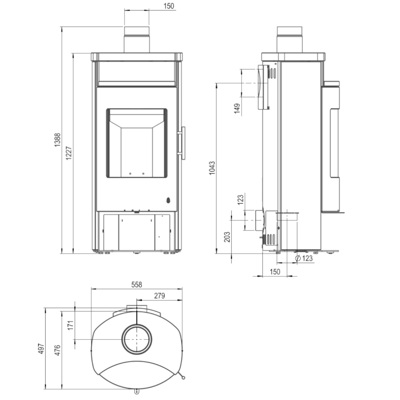 - Scheibenspülung: Ja, klare Sicht auf das Feuer - Luftstrom vor der Glasscheibe, dadurch wird die Verschmutzung der Scheibe minimiert