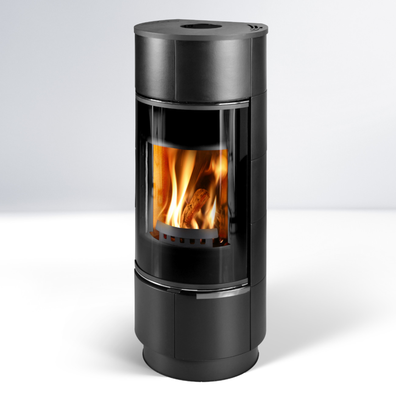 Optional lässt sich der Kaminofen zusätzlich mit Speichersteinen (bis zu 42,5 kg) ausstatten. Diese bestehen aus zwei oberen Speicherringen und vier seitlichen Speichersteinen. So gibt der Ofen die Wärme auch nach Erlöschen des Feuers über mehrere Stunden ab – bis zu 7 Stunden Wärmespeicherung in einem gut isolierten Gebäude.