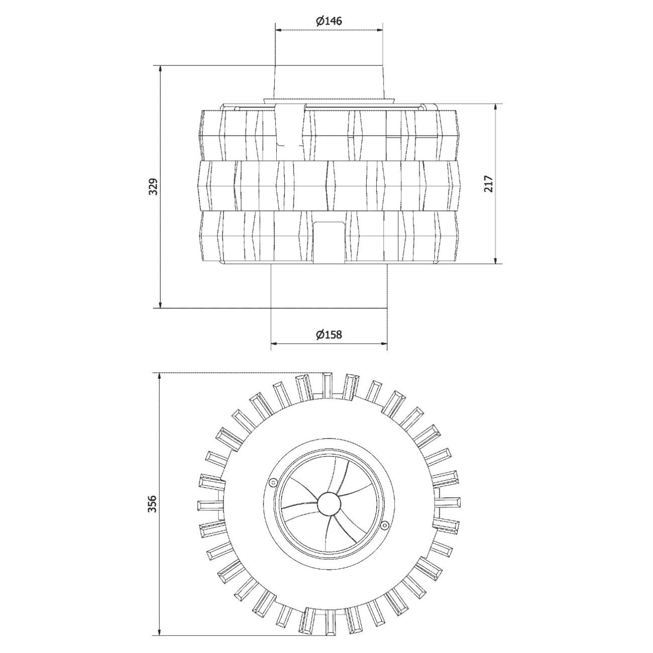 - Durchmesser Anschluss externe Luftzufuhr: 125 mm