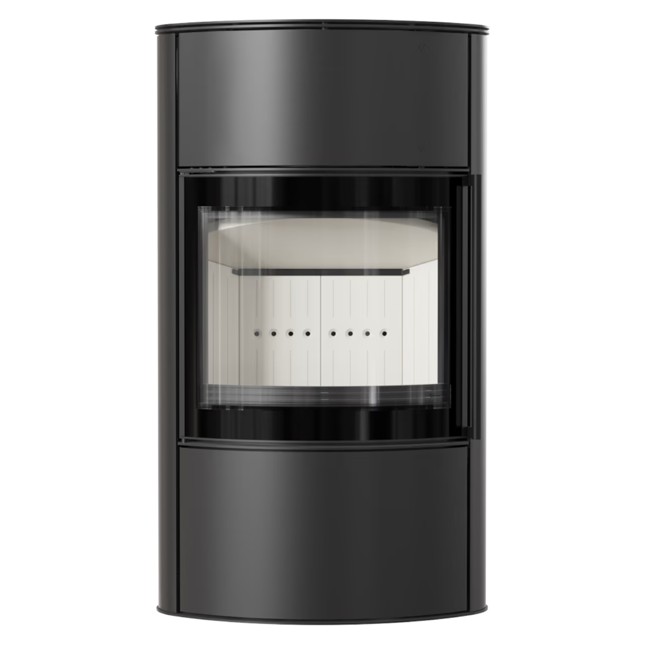 Die großflächige Panoramascheibe mit schwarzer Dekorlinie sorgt für ein beeindruckendes Flammenbild und macht den Ofen zum stilvollen Mittelpunkt jedes Raumes.