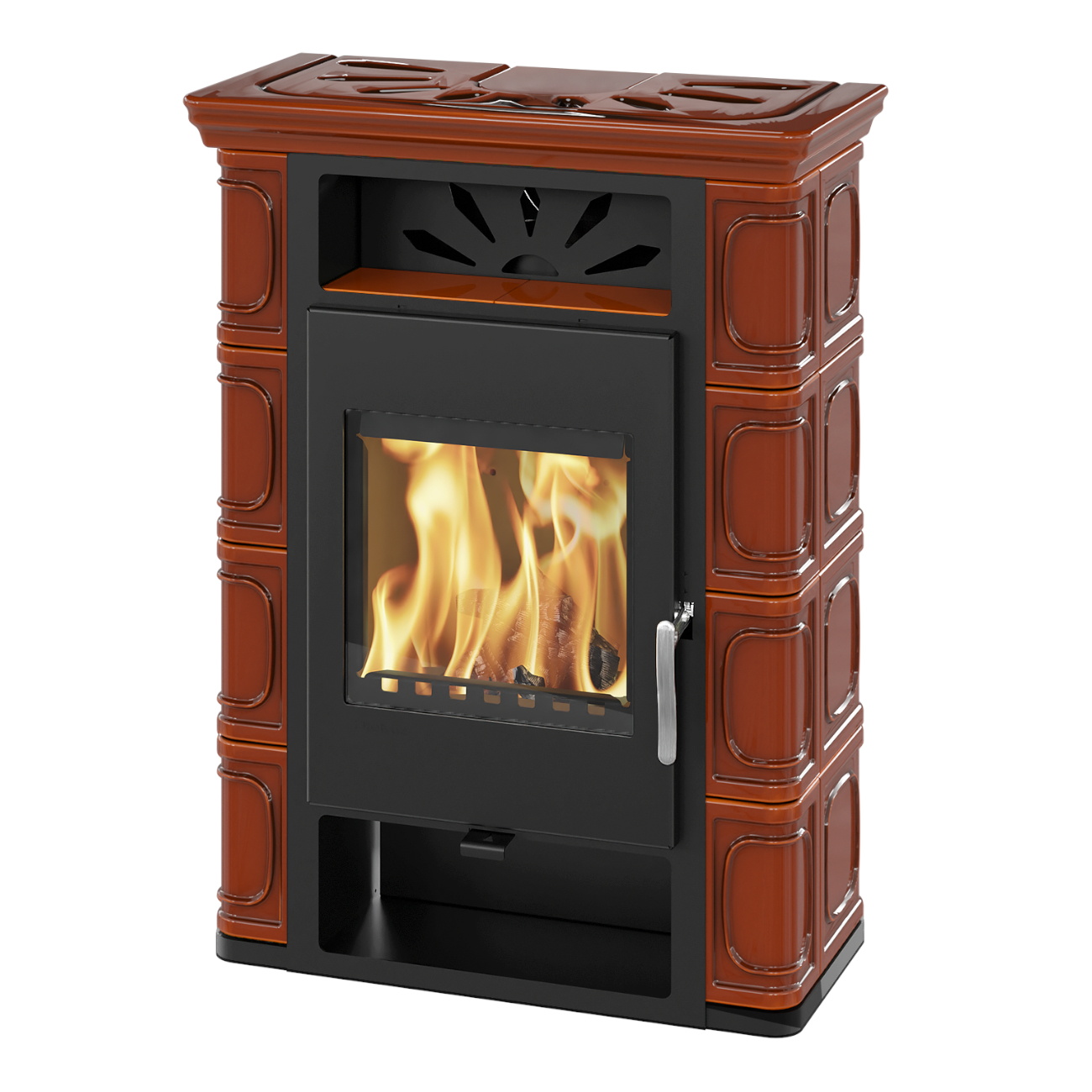 Der Borgholm Keramik Kaminofen besticht durch seine hochwertige Verkleidung mit handgefertigten braunen Kacheln, die Ihrem Zuhause eine besondere Note verleihen. Der Feuerraum ist mit dicken Schamottsteinen ausgestattet, die eine optimale Wärmeentfaltung unterstützen und für eine langanhaltende Wärmespeicherung sorgen.