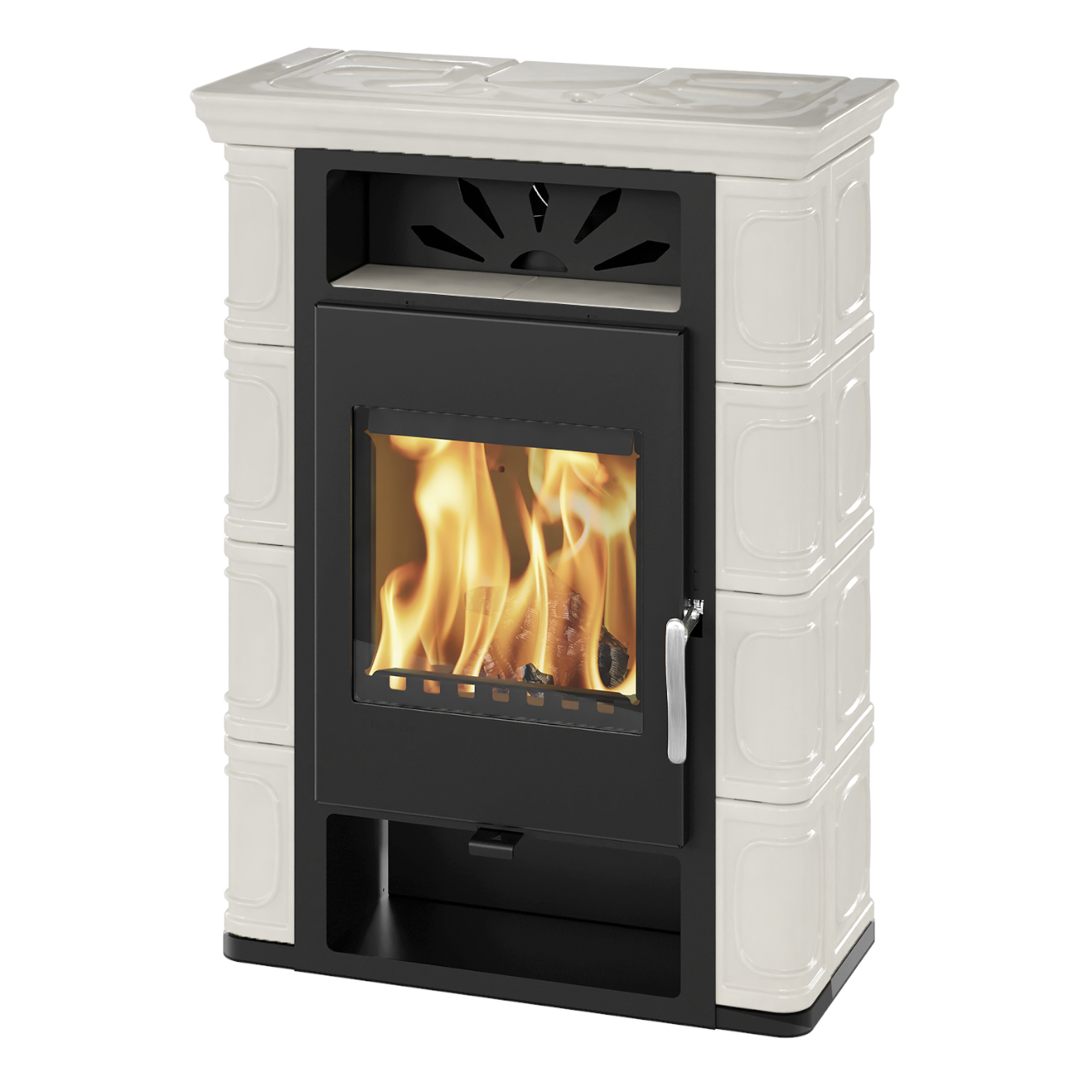 Der Borgholm Keramik Kaminofen besticht durch seine hochwertige Verkleidung mit handgefertigten Elfenbein Kacheln, die Ihrem Zuhause eine besondere Note verleihen. Der Feuerraum ist mit dicken Schamottsteinen ausgestattet, die eine optimale Wärmeentfaltung unterstützen und für eine langanhaltende Wärmespeicherung sorgen.