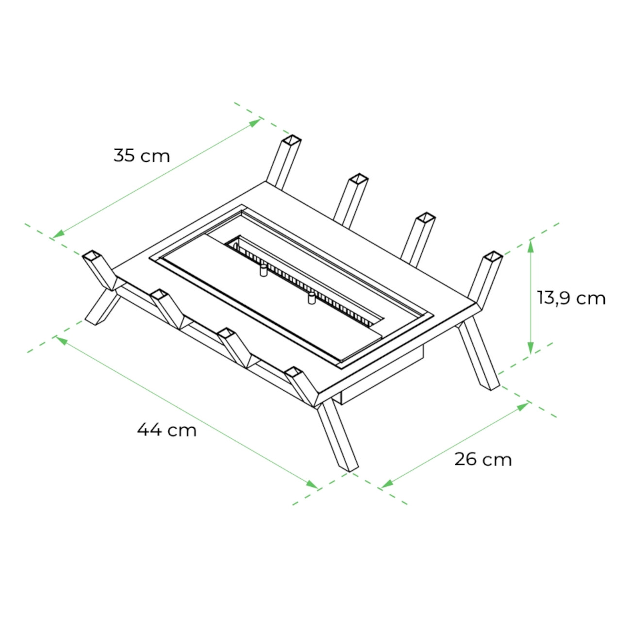 Der Burgos M besteht aus einem stabilen Stahlrost in Schwarz, einem leistungsstarken Bioethanol-Brenner sowie 5 dekorativen Keramikhölzern, die oberhalb des Rosts platziert werden. Wichtig ist, dass die Öffnung des Brenners dabei nicht bedeckt wird, um eine saubere Verbrennung zu gewährleisten.