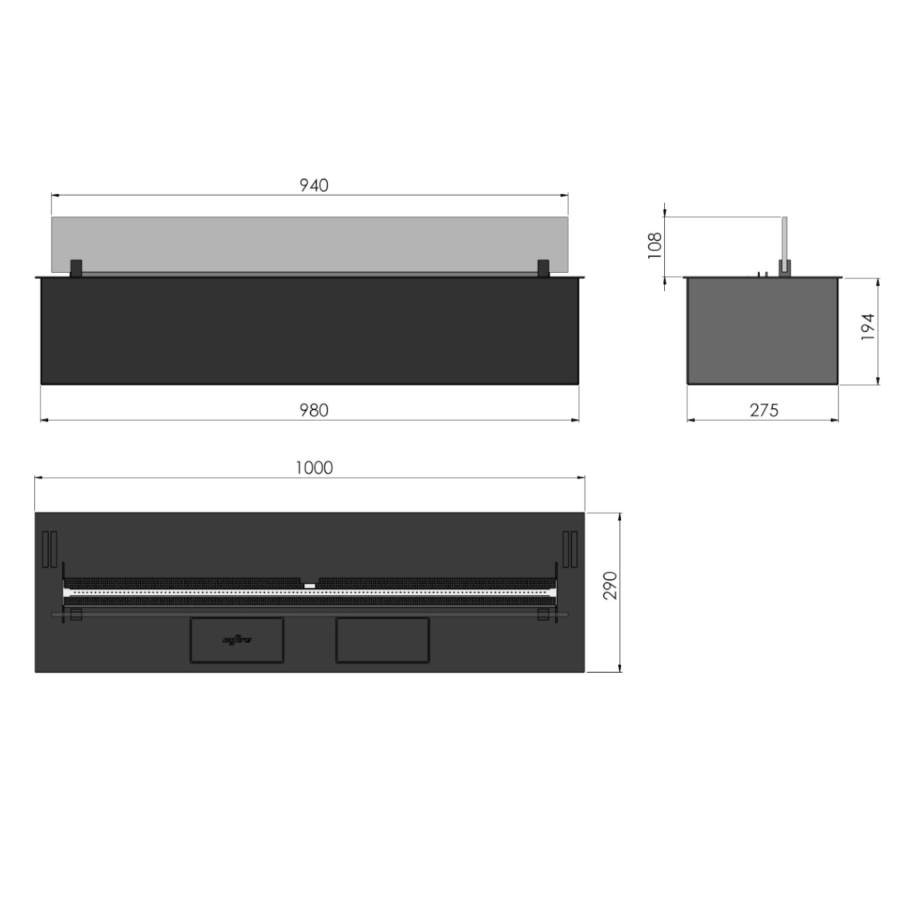 - Einbauöffnung: 990 x 290 x 210 mm