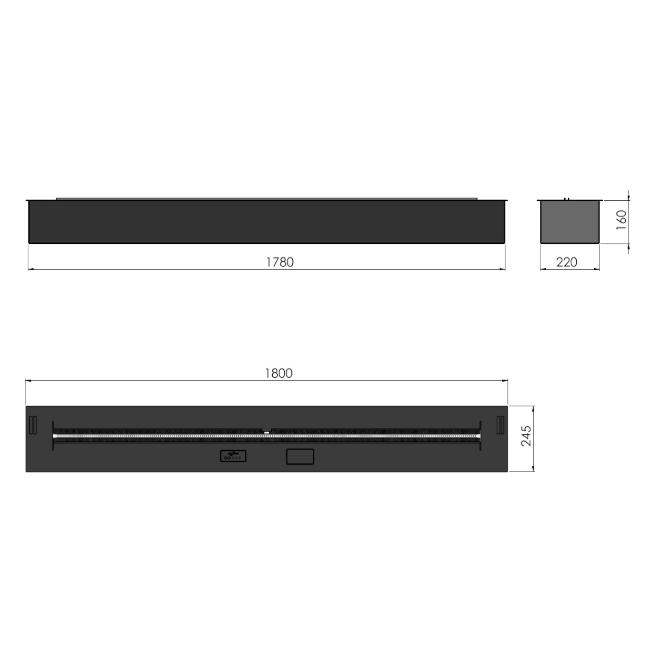 - Einbauöffnung: 1790 x 240 x 170 mm