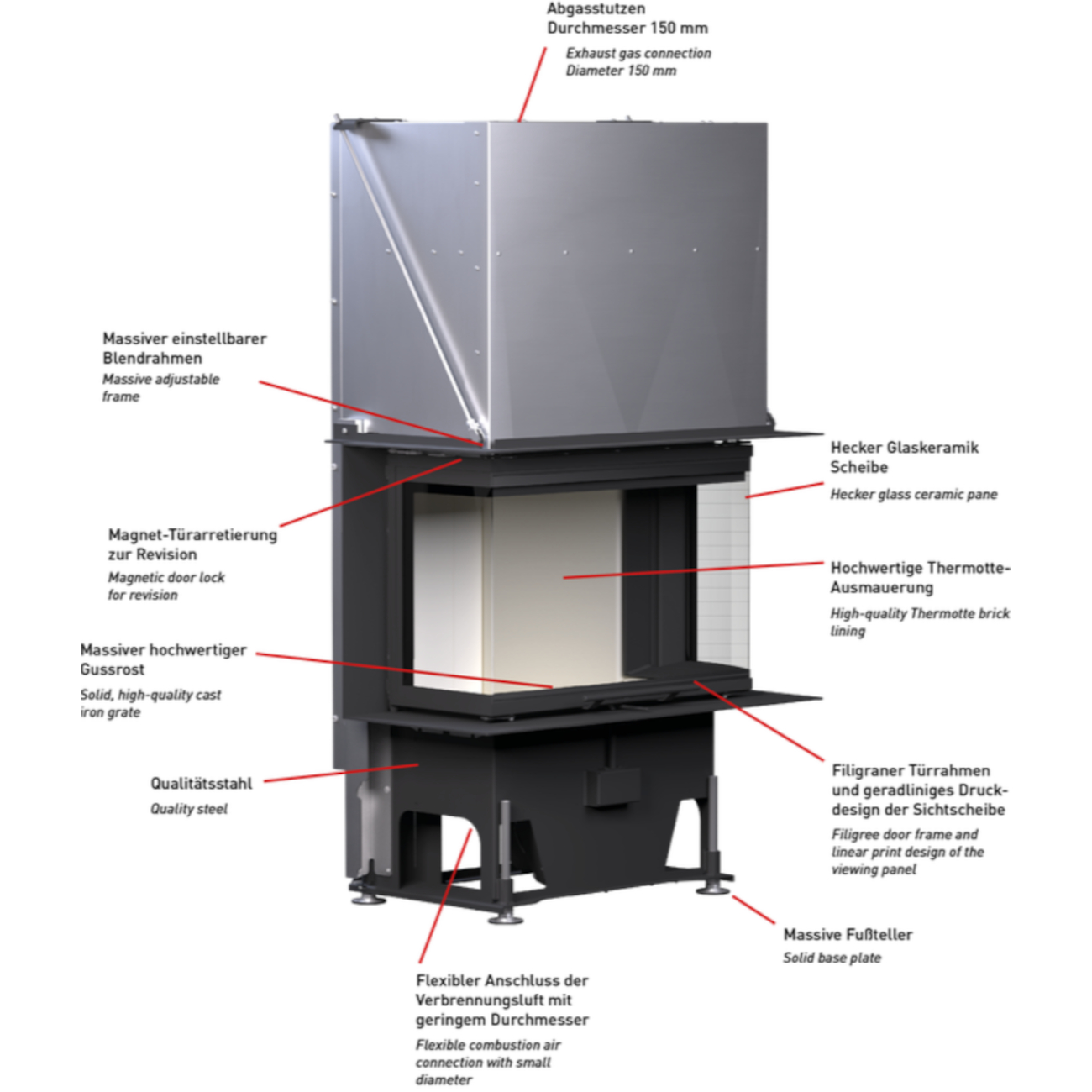 - ✔ Abgasstutzen Ø150 mm – flexibel anschließbar