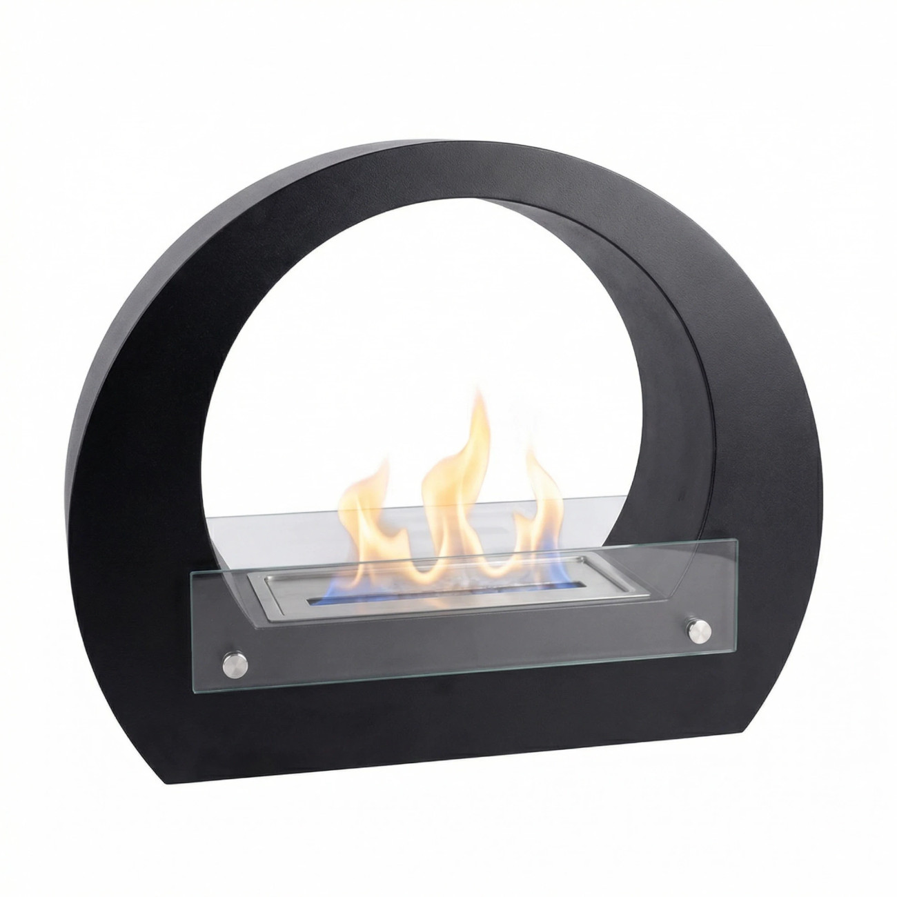 Der Dallas Tischkamin Ethanolkamin Schwarz ist ein moderner, freistehender Bioethanol-Kamin in eleganter Bogenform. Mit seinen weichen Linien und dem offenen Design setzt er ein stilvolles Statement und eignet sich perfekt als dekoratives Highlight auf Tischen, Sideboards, Regalen oder auch direkt auf dem Boden.