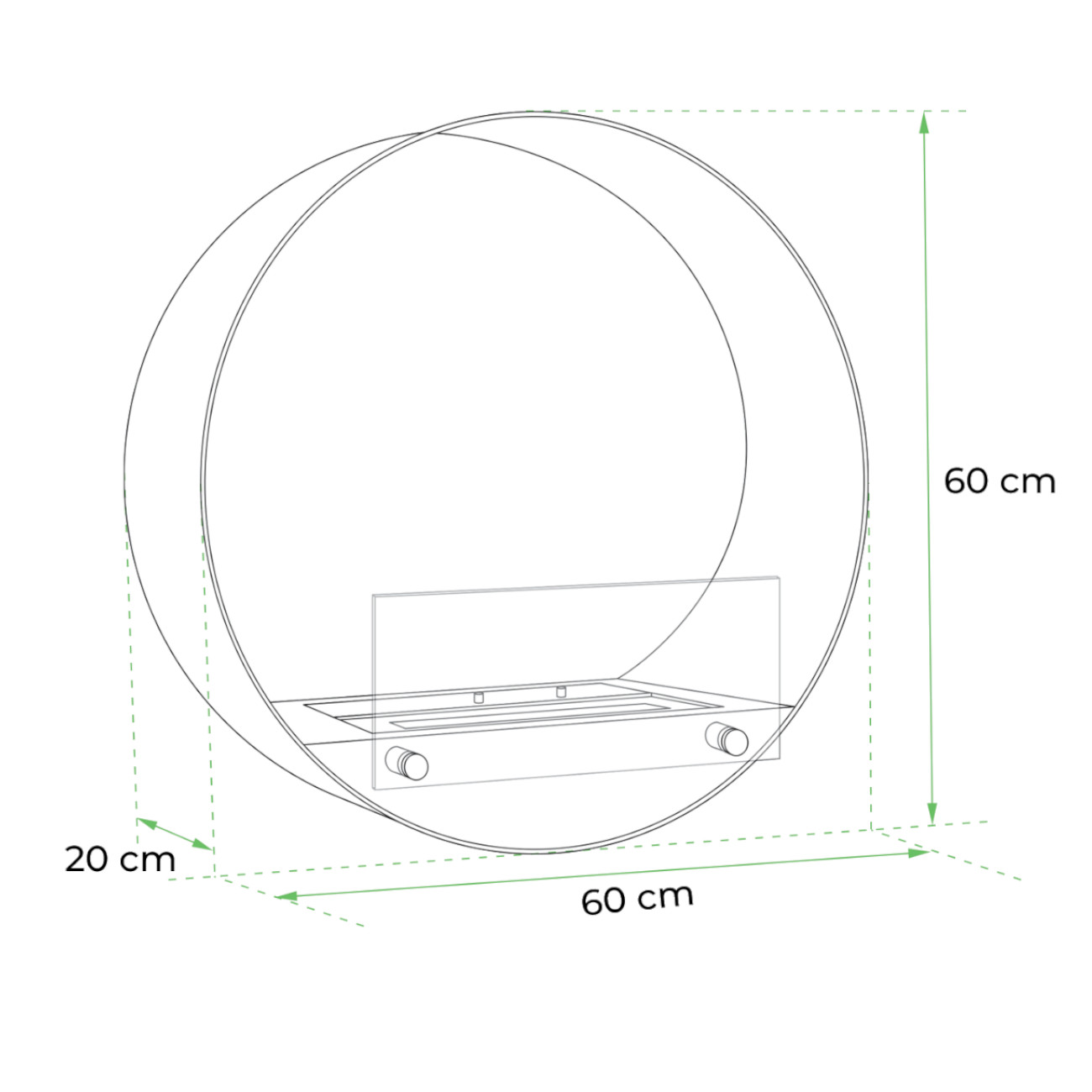 Delaware Ethanol Wandkamin Schwarz – Runder Bioethanol-Kamin Der Delaware Ethanol Wandkamin Schwarz ist ein runder, moderner Bioethanol-Kamin, der mit seiner eleganten Rundung und dem schmalen Rand eine besonders gemütliche Atmosphäre schafft. Mit kompakten Maßen von H: 60 cm x B: 60 cm x T: 20 cm passt er ideal in Wohnbereiche und sorgt für stilvolle Akzente. Rundes Design mit Sicherheitsglas Die Front des Kamins ist mit einem Sicherheitsglas ausgestattet, das die Flammen vor Zugluft und Wind schützt und ein ruhiges, stabiles Flammenbild gewährleistet. Der runde Rahmen sorgt dafür, dass die Flammen in der Mitte des Kamins optimal zur Geltung kommen. 1,5 Liter Deluxe-Brenner mit regulierbarer Flamme Der manuelle 1,5 Liter Deluxe-Brenner erzeugt eine Flamme von ca. 24 cm Länge und bietet eine Brenndauer von bis zu 6 Stunden pro Füllung (abhängig von Flammengröße und Raumzug). Die Flamme lässt sich regulieren, sodass sowohl Heizleistung als auch Verbrauch angepasst werden können. Kapazität: 1,5 Liter Brenndauer: bis zu 6 Stunden Wärmeleistung (max.): 1,76 kW Verbrauch: ca. 0,25 L/Stunde Flammenlänge: ca. 24 cm Die empfohlene Mindestraumgröße beträgt 45 m³ (ca. 18 m²), um eine ausreichende Sauerstoffzufuhr während des Betriebs zu gewährleisten. Hochwertige Verarbeitung Der Delaware Wandkamin besteht aus robustem Stahl mit schwarz pulverbeschichteter Oberfläche und zeigt eine runde, kompakte Form, die modernes Design und Langlebigkeit vereint. Einfache Wandmontage Der Kamin wird mithilfe der mitgelieferten Halterung an der Wand befestigt, wodurch ein kleiner Abstand zwischen Kamin und Wand entsteht, der die Wand vor direkter Wärme schützt. Die Montage ist einfach und vergleichbar mit der Installation eines Flachbildfernsehers. Keine Abzug- oder Schornsteinanlage erforderlich Kein Stromanschluss notwendig Manuell regulierbare Flamme Einfache Wandmontage mit Schrauben und Dübeln Maße & Gewicht Durchmesser: 60 cm Höhe: 60 cm Tiefe: 20 cm Gewicht: 17,5 kg Technische Daten – Delaware Ethanol Wandkamin Schwarz Brennstoff: Bioethanol 95–97,5 % Kapazität: 1,5 Liter Brenndauer: bis zu 6 Stunden Wärmeleistung (max.): 1,76 kW Verbrauch: ca. 0,25 L/Stunde Empfohlener Luftaustausch: 1 Einstellbar: Ja Steuerung: Manuell Brennkammermodell: 1,5 Liter Deluxe Fernbedienung: Nein Material: Stahl Farbe: Schwarz Form: Rund Inklusive Scheibe: Ja Abzug/Schornstein: Nicht erforderlich Stromanforderungen: Nein Im Lieferumfang enthalten Delaware Wandkaminrahmen – Schwarz 1,5 Liter Deluxe Bioethanol-Brenner Sicherheitsglas und Montagebeschläge Löschwerkzeug Montagehalterung Benutzerhandbuch Der Delaware Ethanol Wandkamin Schwarz überzeugt durch seine elegante runde Form, regulierbare Flamme und einfache Montage – ideal für moderne Wohnräume mit kompakter, gemütlicher Wärmequelle.