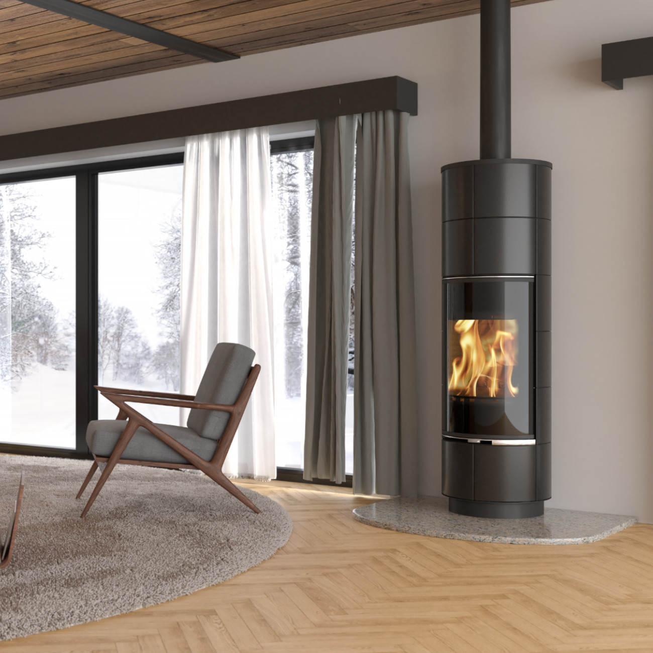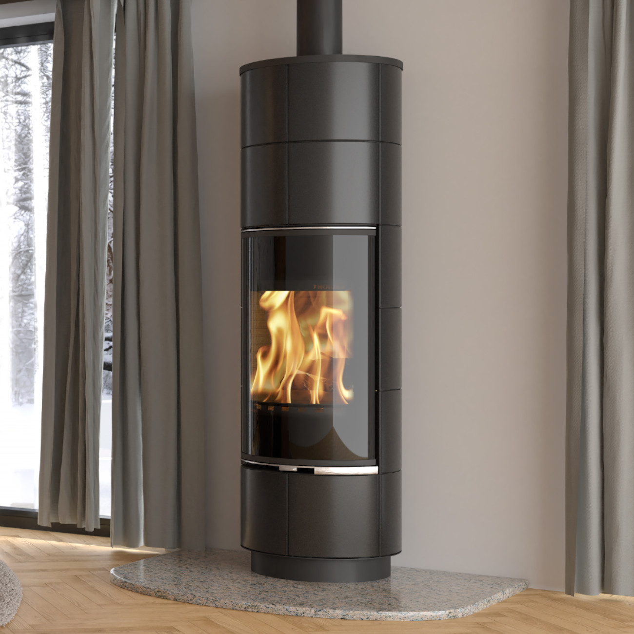 Der Delia Keramik Plus Graphit Speicher-Kaminofen ist ein majestätischer freistehender Kachel-Kaminofen mit optionaler zusätzlicher Wärmespeicherung durch Speichersteine (bis zu 72 kg). Mit seiner 7 kW Nennwärmeleistung, der großen runden Sichtscheibe und einer eleganten Keramikverkleidung in Graphit bringt er zeitloses Design und kraftvolle Wärme in Ihr Zuhause. Die Design-Vollglastür mit 2-Fach Verriegelung sowie der dezente Griff rechts unterhalb der Brennkammer, der auch während des Betriebs kühl bleibt, machen diesen Kaminofen zum Highlight in jedem modernen Wohnraum.