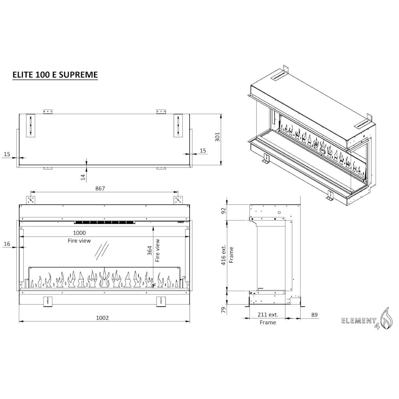 Der Element4 Elite 100E Supreme bietet Ihnen ein luxuriöses Elektrokamin-Erlebnis: realistisches Feuer, hochwertige Verarbeitung, moderne Technik und maximale Einbau-Flexibilität. Perfekt für moderne Wohnräume, Cinewalls und stilvolle Innenarchitektur – und ideal geeignet für eine unkomplizierte Installation in Trockenbaukonstruktionen.