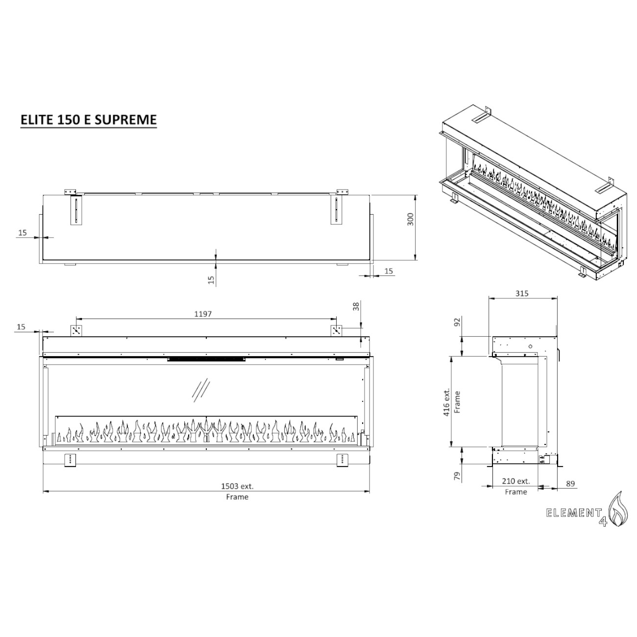 ?Elite 60 I E Supreme – Realistische Eleganz trifft auf modernste Elektrokamin-Technologie? Innovativ, realistisch und elegant – entdecken Sie die exklusiven Elektrokamine von Element4. Wenn Sie ein Elektrokamin-Modell suchen, das ein täuschend echtes Flammenbild, hochwertige Materialien und eine klare, moderne Formensprache vereint, ist der Elite 60 I E Supreme die perfekte Wahl. Element4 steht als niederländischer Premium-Hersteller weltweit für schlichte Eleganz, funktionales Design und höchste technische Ansprüche. Designer, Architekten und anspruchsvolle Verbraucher schätzen die außergewöhnliche Optik und die präzise Verarbeitung – kombiniert mit fortschrittlichster Technologie. Perfekt geeignet für Ihre Cinewall Der Elite 60 I E Supreme eignet sich ideal für den Einbau in eine moderne Cinewall. Durch seine klare Linienführung, die entspiegelte Frontscheibe und die flexible Blendrahmen-Option fügt er sich nahtlos in Wandpaneele, TV-Wände oder maßgeschneiderte Wohnlandschaften ein. Bauen Sie sich Ihre eigene Cinewall mit integriertem Elektrokamin – stilvoll, sicher und mit beeindruckender Feuerinszenierung. Dank der unkomplizierten Einbaubedingungen (kein Schornstein, kein Rauch, keine Brandgefahr) sind Ihrer Kreativität kaum Grenzen gesetzt. Schlichte Eleganz & beeindruckende Feuer-Inszenierung Der Elite 60 I E Supreme überzeugt durch entspiegeltes Glas, ein tiefes Ultra-HD-Flammenbild und eine gestochen scharfe Holzfeueroptik. Dank spezieller Reflexionstechnologie wirken Glutbett und Asche naturgetreu – wie bei einem echten Kaminfeuer, jedoch vollkommen sauber und sicher. Die elegante schwarze Rückwand sorgt für räumliche Tiefe, während das hochwertige, aus Epoxidharz gegossene Holzset ein authentisches Erscheinungsbild schafft. Modernste Technik für maximalen Komfort Über die intuitive App-Steuerung (Smartphone oder Tablet) sowie die beiliegende Fernbedienung können Sie: 11 verschiedene Flammenbilder individuell einstellen Flammengeschwindigkeit anpassen Thermostat & Wärmeleistung regulieren „Remember Last Settings“ nutzen Die verbaute Ultra-HD-LED-Technologie erzeugt ein besonders tiefes und lebendiges Flammenbild – ein optisches Highlight in jedem Wohnraum. Keine Einbaubedingungen – maximale Flexibilität Da der Elektrokamin weder Abzug noch Schornstein benötigt, ist er nahezu überall einbaubar – ideal für Häuser, Wohnungen, Cinewalls, Gewerbeflächen oder modernisierte Wohnkonzepte. Keine Brandgefahr, kein Rauch, keine Geruchsbildung. Besonders praktisch: Der Einbau ist auch ganz einfach in eine Trockenbauwand möglich – zum Beispiel in eine Rigips-Konstruktion. Durch seine kompakte Bauweise und die flexiblen Blendrahmen eignet sich der Kamin perfekt für individuelle Wandgestaltungen. Vorteile auf einen Blick Epoxidharz gegossenes Echtholzset Entspiegeltes Glas für realistische Feueroptik Elegante schwarze Rückwand Einstellbare Flammengeschwindigkeit Viele verschiedene Flammenbilder „Remember Last Settings“ Funktion Ultra-HD-Flammeneffekt Heizfunktion & integriertes Thermostat App-Steuerung per WiFi über Smartphone, Tablet, Alexa und Google Home Inkl. Fernbedienung Einfache Einbaubedingungen, keine Brandgefahr 2 verschiedene Blendrahmen verfügbar Perfekt für Cinewall-Integration geeignet Ideal für Trockenbau & Rigips-Wände Technische Daten Wärmeleistung: 1,5 kW Einbaumaße: 50,0 cm (H) x 60,0 cm (B) x 30,0 cm (T) Brennraum / Fire View Opening: 33,7 cm (H) x 46,2 cm (B) Gewicht: k. A. Lieferumfang Elite 60 I E Supreme Elektrokamin Epoxidharz-Holzset Schwarze Rückwand Fernbedienung WiFi-App-Steuerung 4-seitiger Blendrahmen ohne Winkel (für flächenbündigen Einbau) oder 3-seitiger Blendrahmen mit Winkel (für wandbündigen Einbau oben/seitlich) Mit dem Element4 Elite 60 I E Supreme holen Sie sich die perfekte Kombination aus Design, Technik und authentischem Flammenerlebnis in Ihr Zuhause. Ideal für Cinewalls, moderne Wohnkonzepte und hochwertige Innenraumgestaltung – und perfekt geeignet für den einfachen Einbau in Trockenbau- und Rigips-Wände.