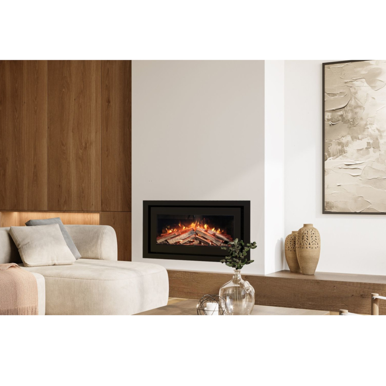 Der Elite 90 I E Supreme überzeugt durch seine reflektionsarme Scheibe, tiefen Ultra-HD-Flammeneffekt und seine hochwertige Holzoptik aus epoxidharzgegossenen Elementen. Die schwarze Rückwand erzeugt zusätzliche Tiefe und unterstreicht den realistischen Feuercharakter – sauber, sicher und beeindruckend authentisch.