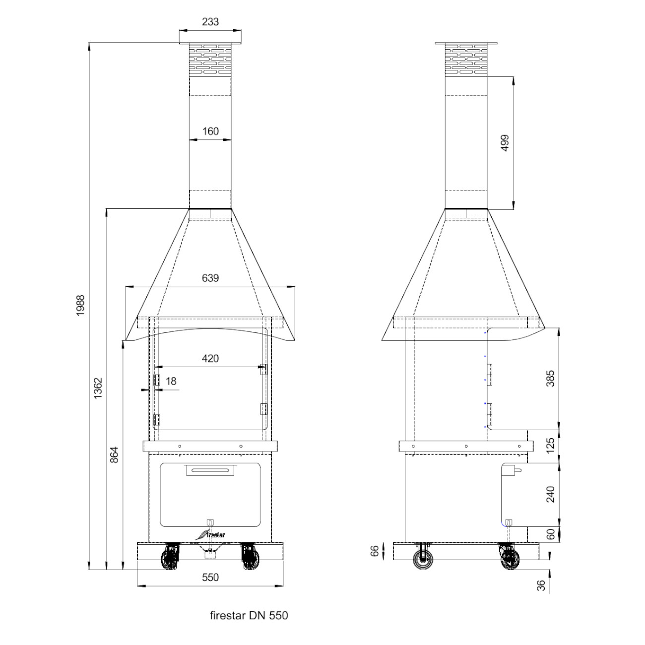 Firestar DN 550 Mesh 3. Generation – Edelstahl Gartenkamin & Grill in Schwarz Ihr Einstieg in stilvolles Outdoor-Living Der Firestar DN 550 Mesh der 3. Generation in Schwarz lackiert vereint Gartenkamin und Grillfunktion in einem hochwertigen Outdoor-Gerät. Mit einer Höhe von fast 2 Metern und einem Durchmesser von 55 cm ist dieser Edelstahl Gartenkamin mit Grill ideal für kleinere Terrassen und Gärten. Genießen Sie Wärme, Licht und Grillvergnügen in einem Gerät – perfekt für entspannte Abende und gesellige BBQ-Momente im Freien. Markenqualität von Firestar – Made in Germany Firestar steht für hochwertige Gartenkamine und Grillkamine aus Edelstahl mit klarer Formensprache, langlebigen Materialien und zeitlosem Design. Entwickelt und gefertigt in Hannover, überzeugen die Produkte durch höchste Qualität und durchdachte Konstruktion. Dieser Gartenkamin mit Grillfunktion ist nicht nur Wärmequelle, sondern ein echtes Highlight für Ihren Außenbereich. Kompakt, stilvoll und sicher Der Firestar DN 550 Mesh Grillkamin überzeugt durch modernes Design und hohe Sicherheit. Die 360° umlaufende Edelstahl-Mesh-Tür ermöglicht eine beeindruckende Sicht auf das Feuer und schützt gleichzeitig zuverlässig vor Funkenflug. Die Regenhaube der 3. Generation schützt vor Witterungseinflüssen, während integrierte Ablauflöcher Staunässe verhindern. Eine verstärkte Drehfixierung sorgt für maximale Stabilität. Kompakt, leistungsstark und hochwertig Gefertigt aus 100 % Edelstahl (V2A & V4A) und veredelt mit einer Schwarz Lackierung, bietet dieser Gartenkamin höchste Witterungsbeständigkeit und eine edle Optik. Der doppelwandig isolierte Brennraum sorgt für eine effiziente Verbrennung und hohe Strahlungswärme – ideal als Gartenkamin und Grill in einem. Hochwertige Materialien für maximale Effizienz Der isolierte Brennraum gewährleistet eine gleichmäßige Wärmeverteilung. Der Brennraumboden aus feuerfestem Spezialbeton hält Temperaturen bis zu 1.000°C stand und garantiert eine lange Lebensdauer. Perfekt für Grill & Outdoor-Küche Mit dem Edelstahl Grillrost (Ø 34 cm, Made in Germany) und der Fettschutzpfanne wird dieser Gartenkamin zum vollwertigen Grillkamin. Grillen Sie flexibel auf Holz, Grillkohle oder Briketts und genießen Sie authentisches BBQ über offenem Feuer. Dank modularem System erweitern Sie Ihren Gartenkamin Grill jederzeit mit Zubehör: Pizzastein, Gulaschtopf, Steakpfanne oder Grillspieße – für eine komplette Outdoor-Küche. Flexibel, mobil und ganzjährig nutzbar Vier gummierte Rollen mit Drehfixierung ermöglichen eine einfache Positionierung. Der Gartenkamin ist temperaturschockresistent und kann das ganze Jahr betrieben werden – ob Wintergrillen oder gemütliches Kaminfeuer bei Minusgraden. Sicherheit & Umwelt Funkenschutz: 360° umlaufende Edelstahl-Mesh-Tür Regenhaube mit Mesh-Gewebe Umweltfreundliche Lackierung: Der Lack ist auf Wasserbasis (UHT) und enthält erheblich weniger Lösungsmittel als gängiger Lack. Besser für die Umwelt und nur minimale Geruchsbildung bei Inbetriebnahme. Produktmerkmale im Überblick Edelstahl Gartenkamin mit Grillfunktion in Schwarz 360° Edelstahl-Mesh-Tür (Funkenschutz) 100 % Edelstahl (V2A & V4A) Grillen auf Holz, Holzkohle oder Briketts Doppelwandig isolierter Brennraum Feuerfester Betonboden (bis 1.000°C) Mobil auf 4 gummierten Rollen mit Drehfixierung und Ablaufschlitzen Edelstahl-Reling zur Positionierung Doppelwandige Außenhaube Abzugsrohr mit Funkenflugschutz Inkl. Grillrost & Fettschutzpfanne Erweiterbar zur Outdoor-Küche Ganzjährig nutzbar (Wintergrillen geeignet) Nahezu schweißnahtfreie Verarbeitung Schneller Aufbau (ca. 10–15 Minuten) Made in Germany Technische Daten Modell: DN 550 Mesh 3. Generation Farbe: Schwarz lackiert Höhe: 198,8 cm Durchmesser: 55,0 cm Grillrost: Ø 34,0 cm Brennraum: Ø 42,0 cm Außenmaß: Ø 62,9 cm Gewicht: 53 kg Optionales Zubehör & Erweiterungen Schutzblech für Holzlagerung (Edelstahl gebürstet) Schutzhaube mit Reißverschluss und Kordel Einhängetisch (28 x 30 cm) Schornsteinverlängerung (50 cm / 100 cm) Passgenaue Edelstahl-Vorlegeplatten Umfangreiche Auswahl an Zubehör und Erweiterungen Individuelle Einbau- & Erweiterungsmöglichkeiten Ein Einbau mit Rauchrohren und entsprechender Rauchrohrführung über Terrassen- oder Wintergartendächer ist möglich. Sprechen Sie uns gerne an – wir stellen Ihnen die passenden Komponenten individuell zusammen. Der Firestar DN 550 Mesh Gartenkamin & Grill in Schwarz ist die perfekte Kombination aus Kamin, Grill und Outdoor-Küche. Ein echtes Highlight für Garten, Terrasse oder Outdoor-Lounge.
