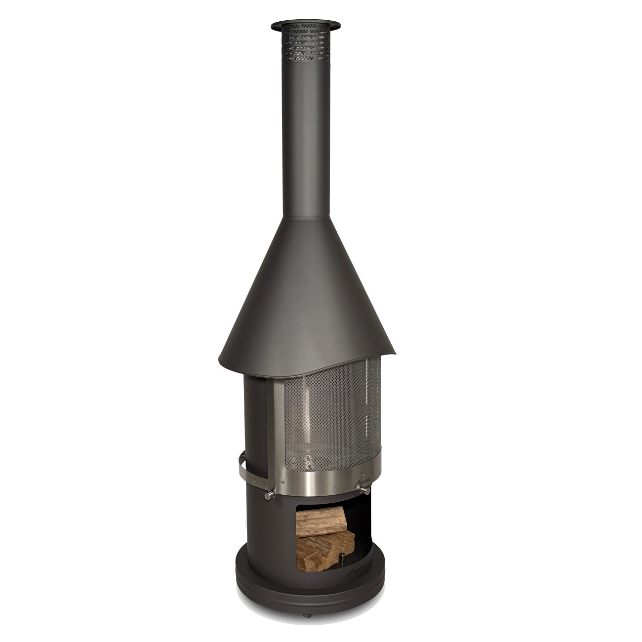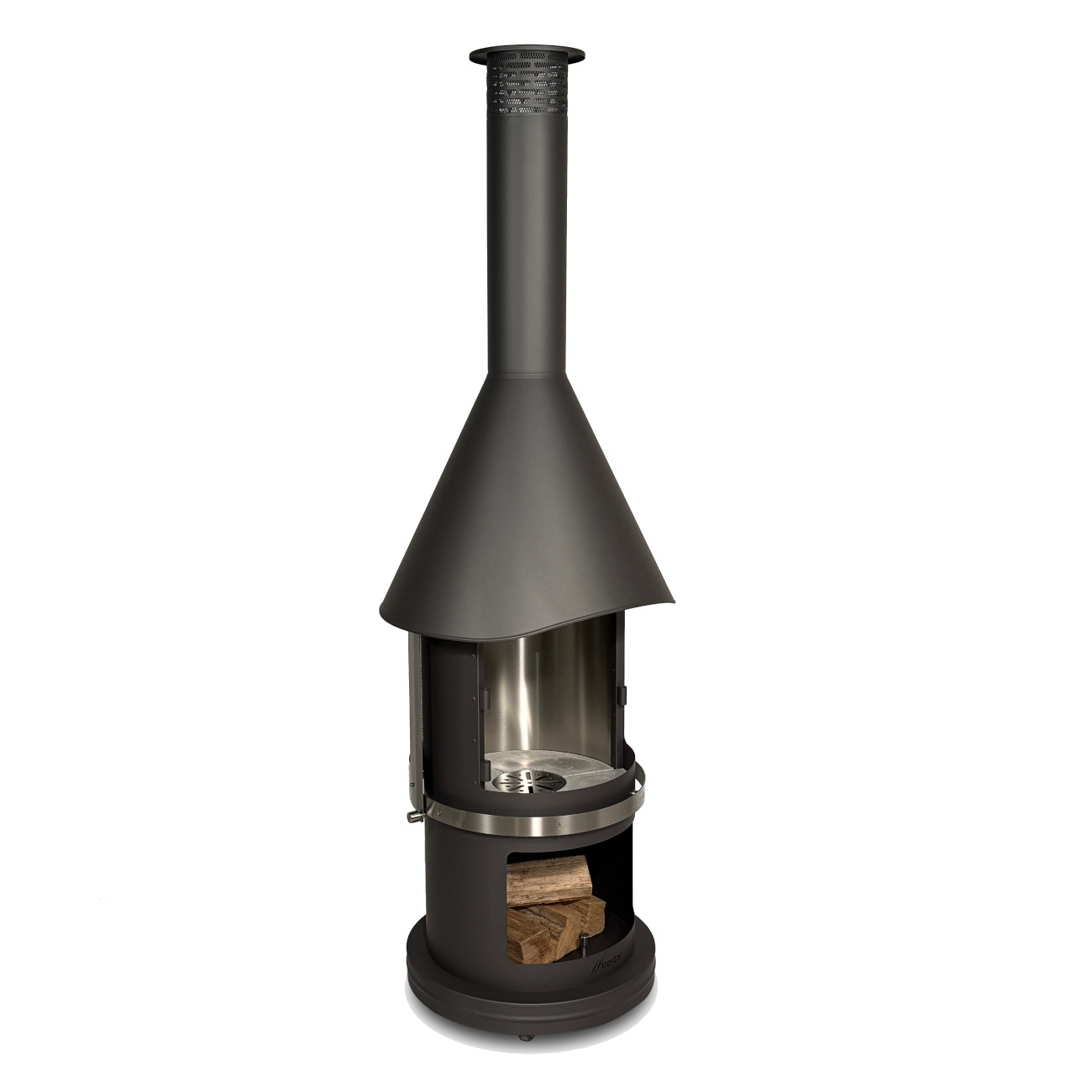 - Edelstahl Gartenkamin mit Grillfunktion in Dunkelgrau