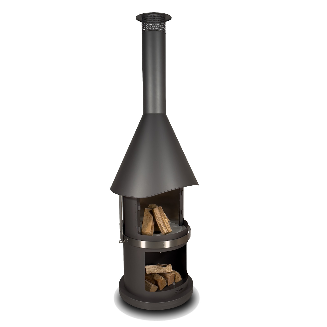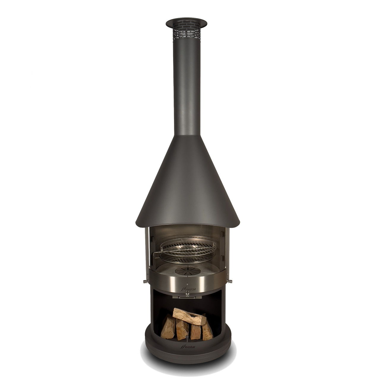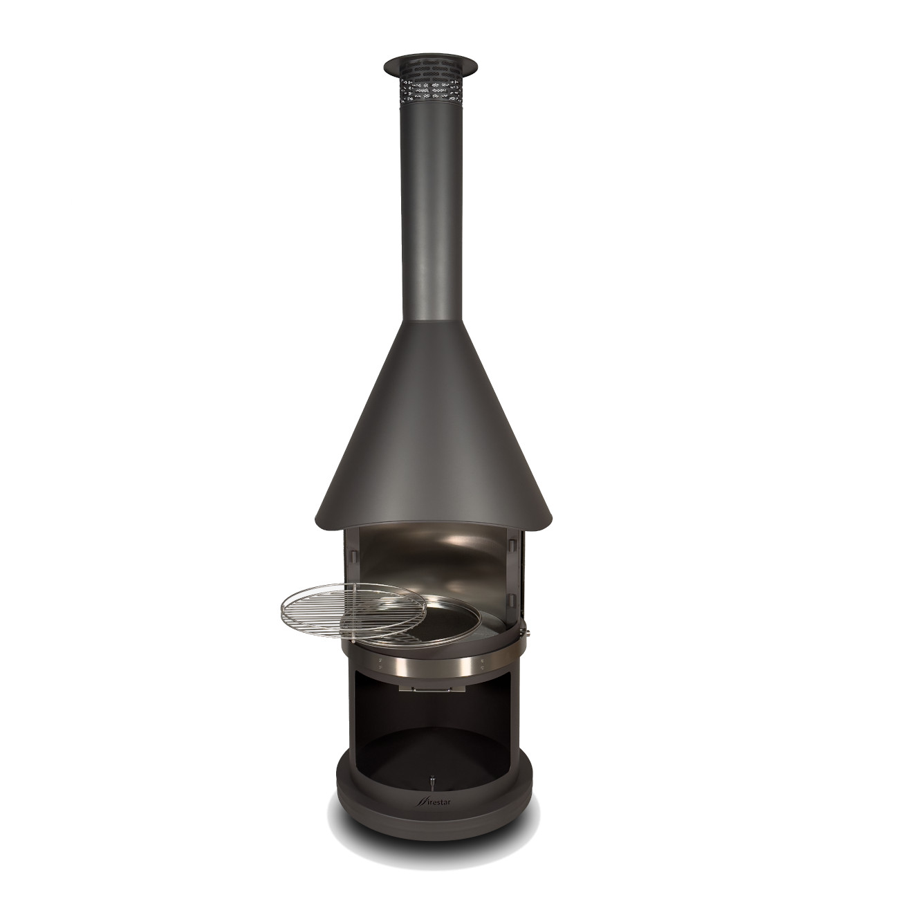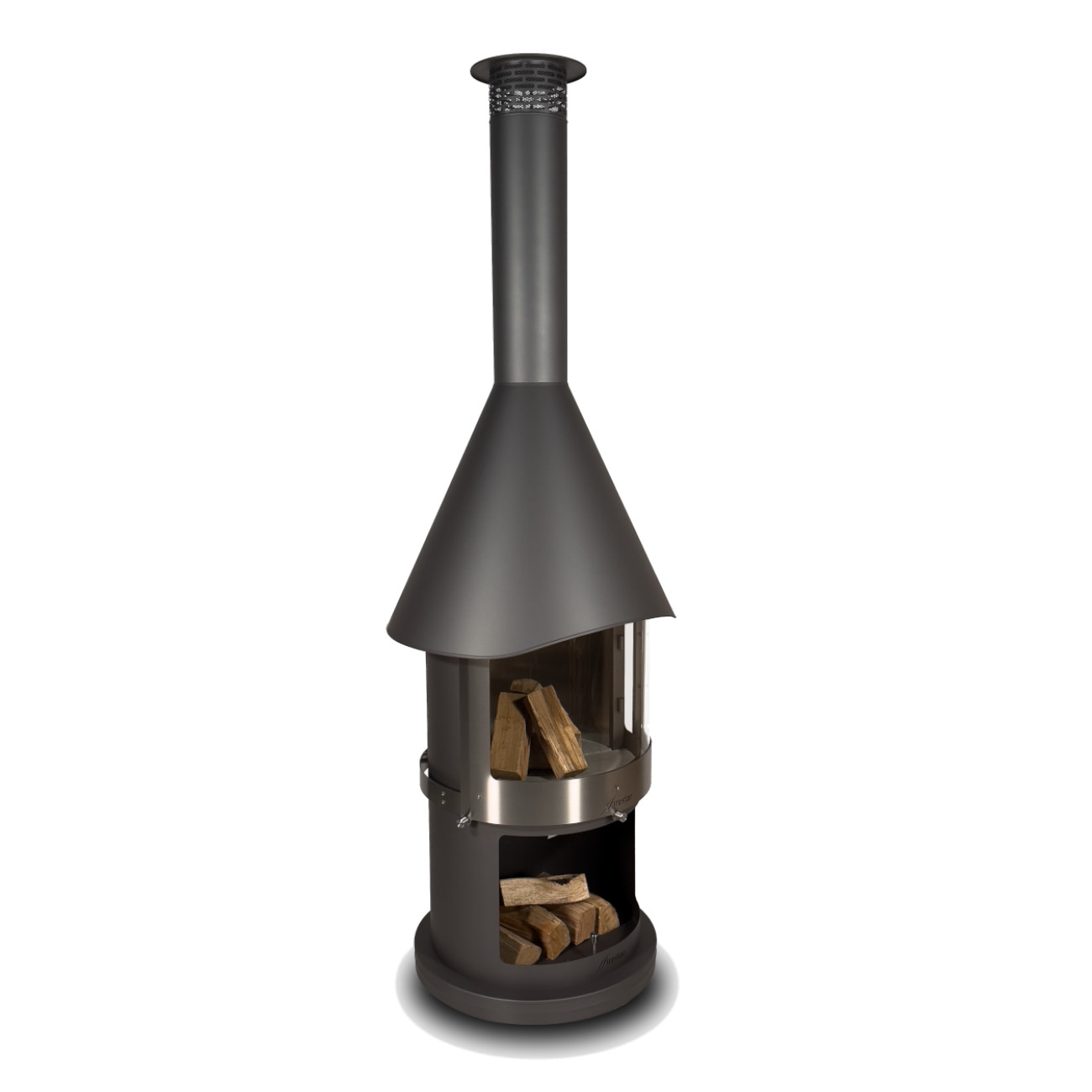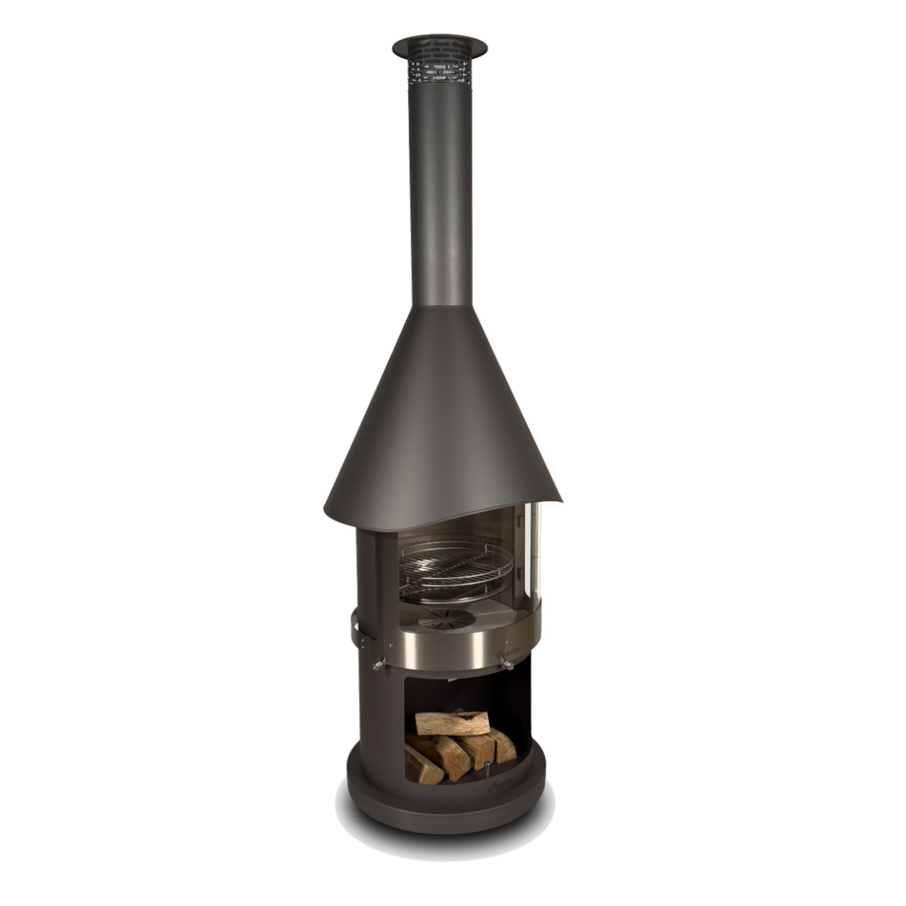 - Großer Edelstahl Gartenkamin mit Grillfunktion in Dunkelgrau