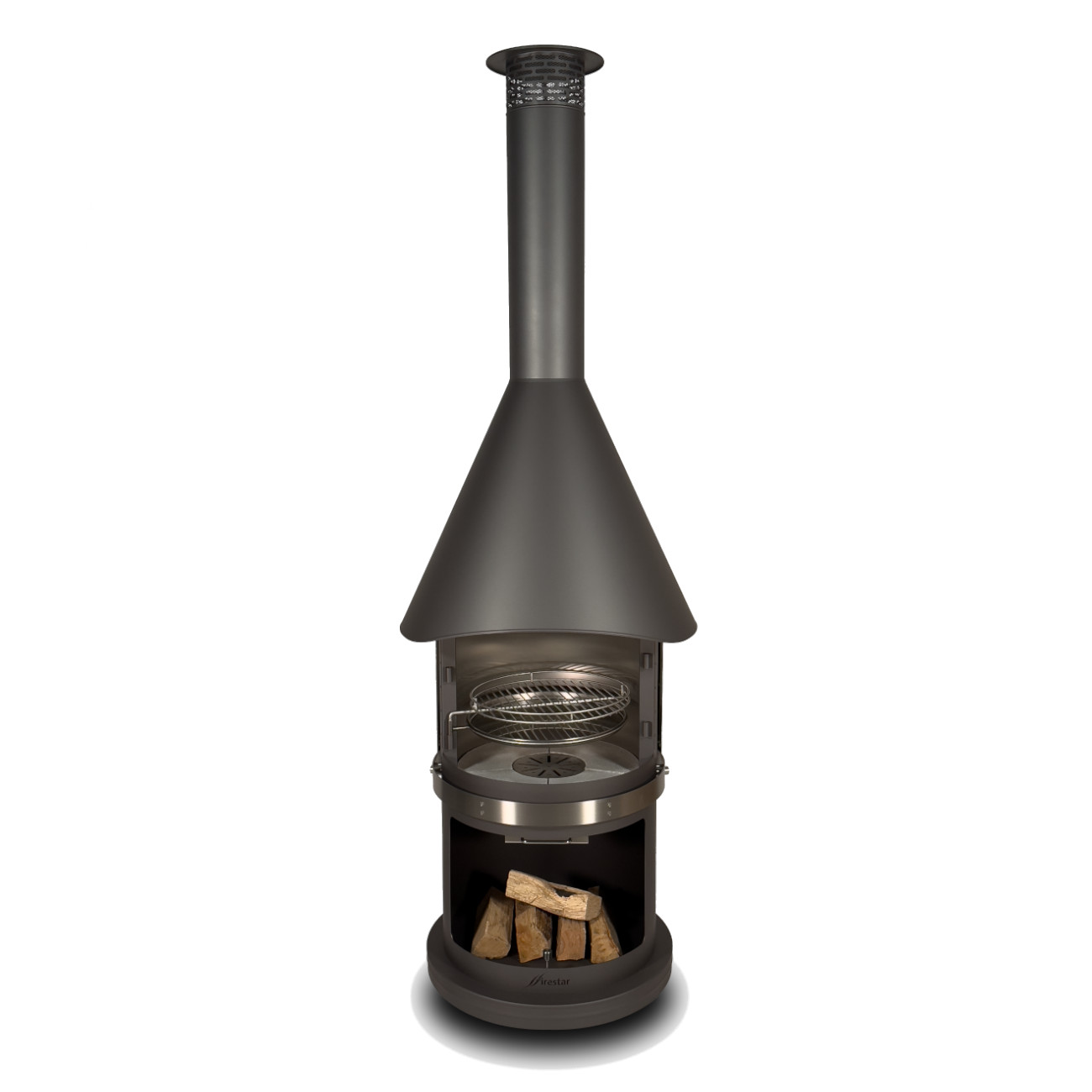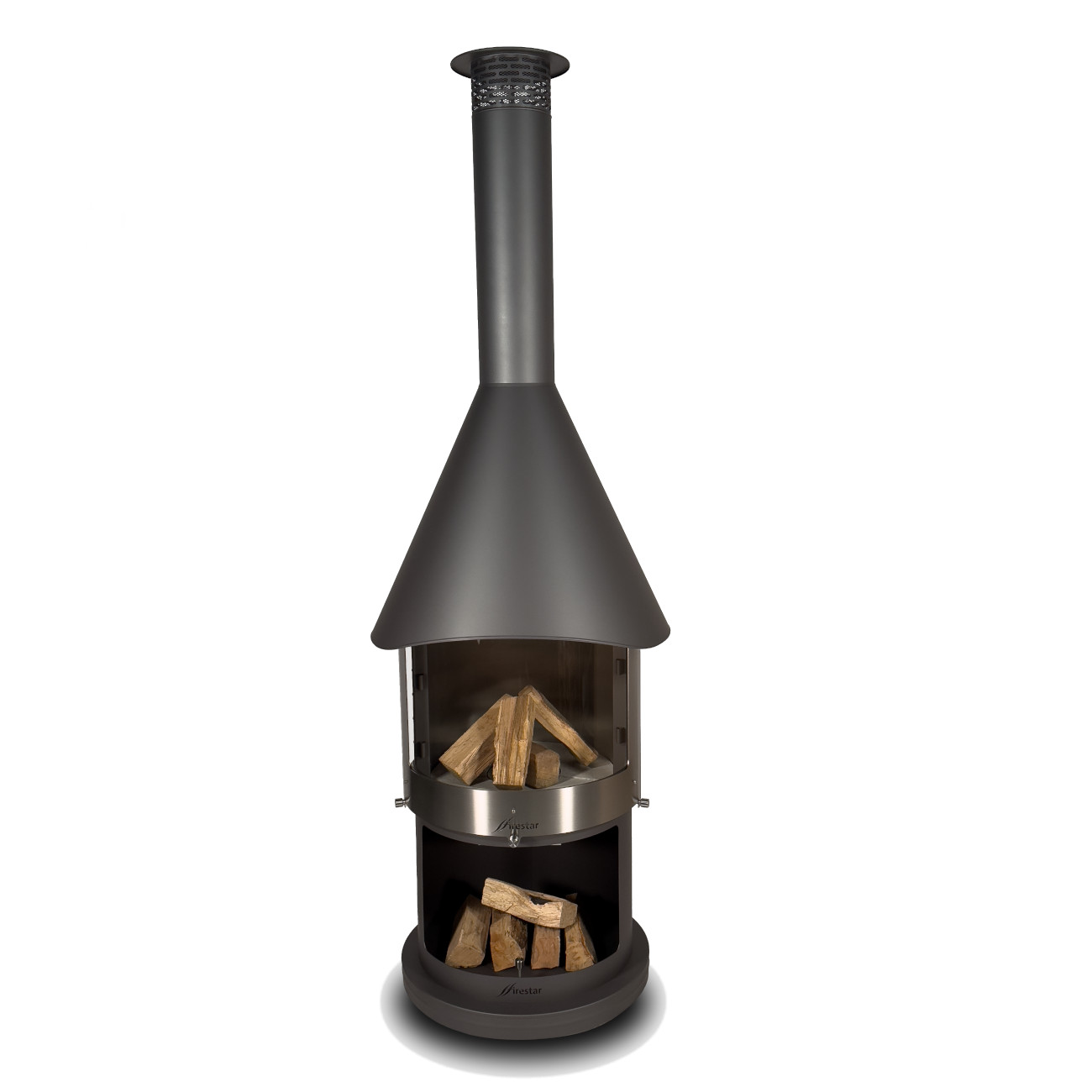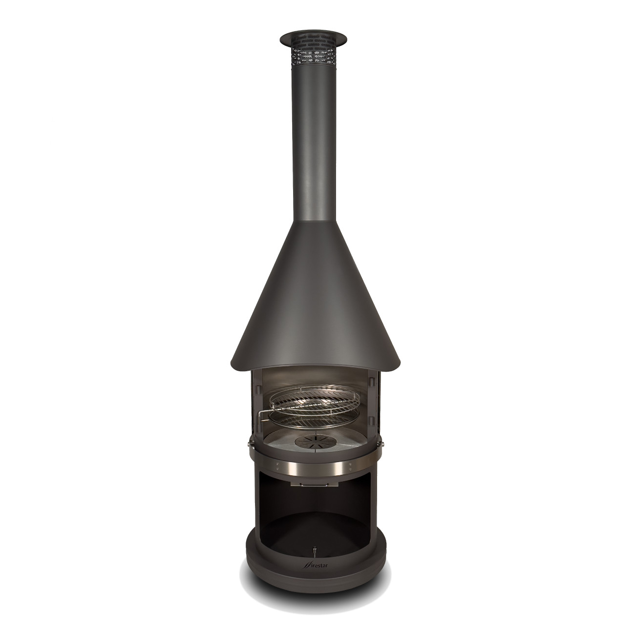 Firestar DN 700 Glas 3. Generation – Großer Edelstahl Gartenkamin & Grill in Dunkelgrau