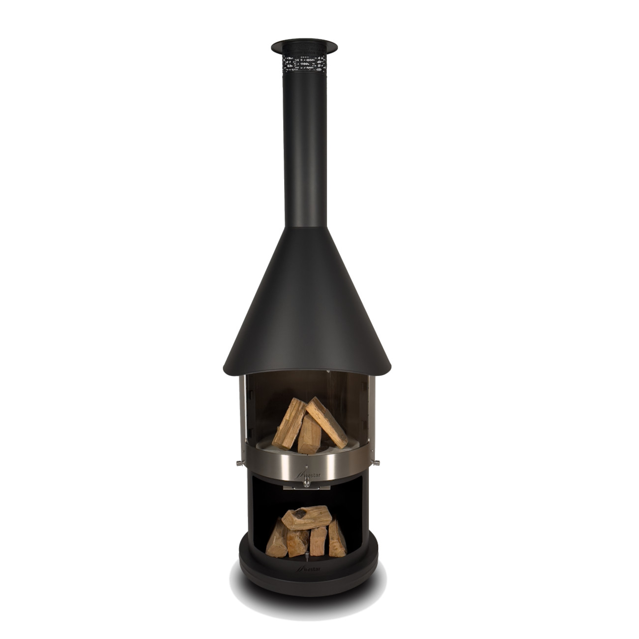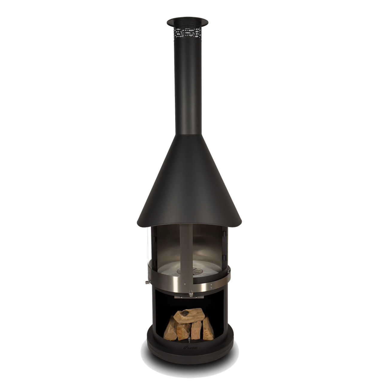 Firestar DN 700 Glas 3. Generation – Großer Edelstahl Gartenkamin & Grill in Schwarz