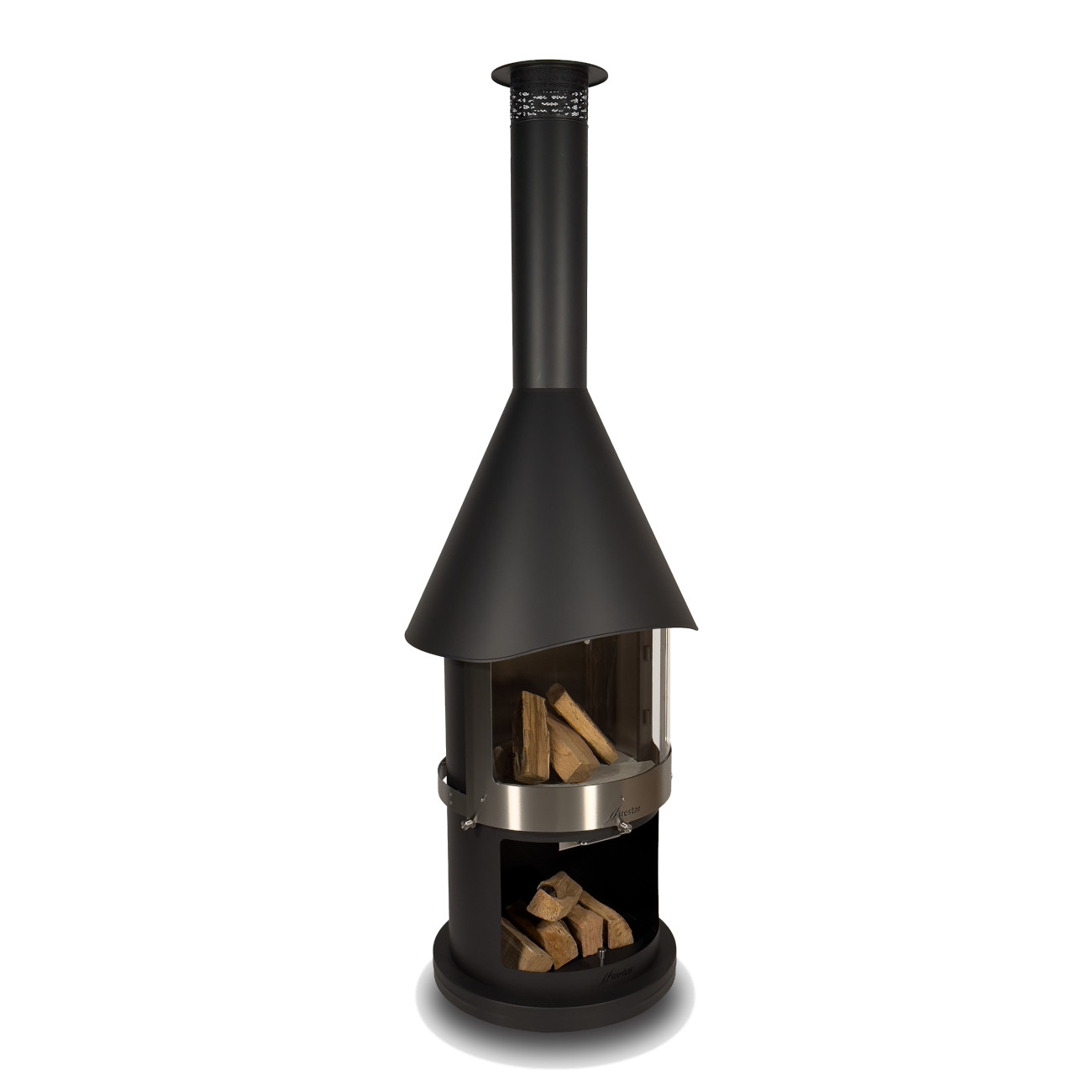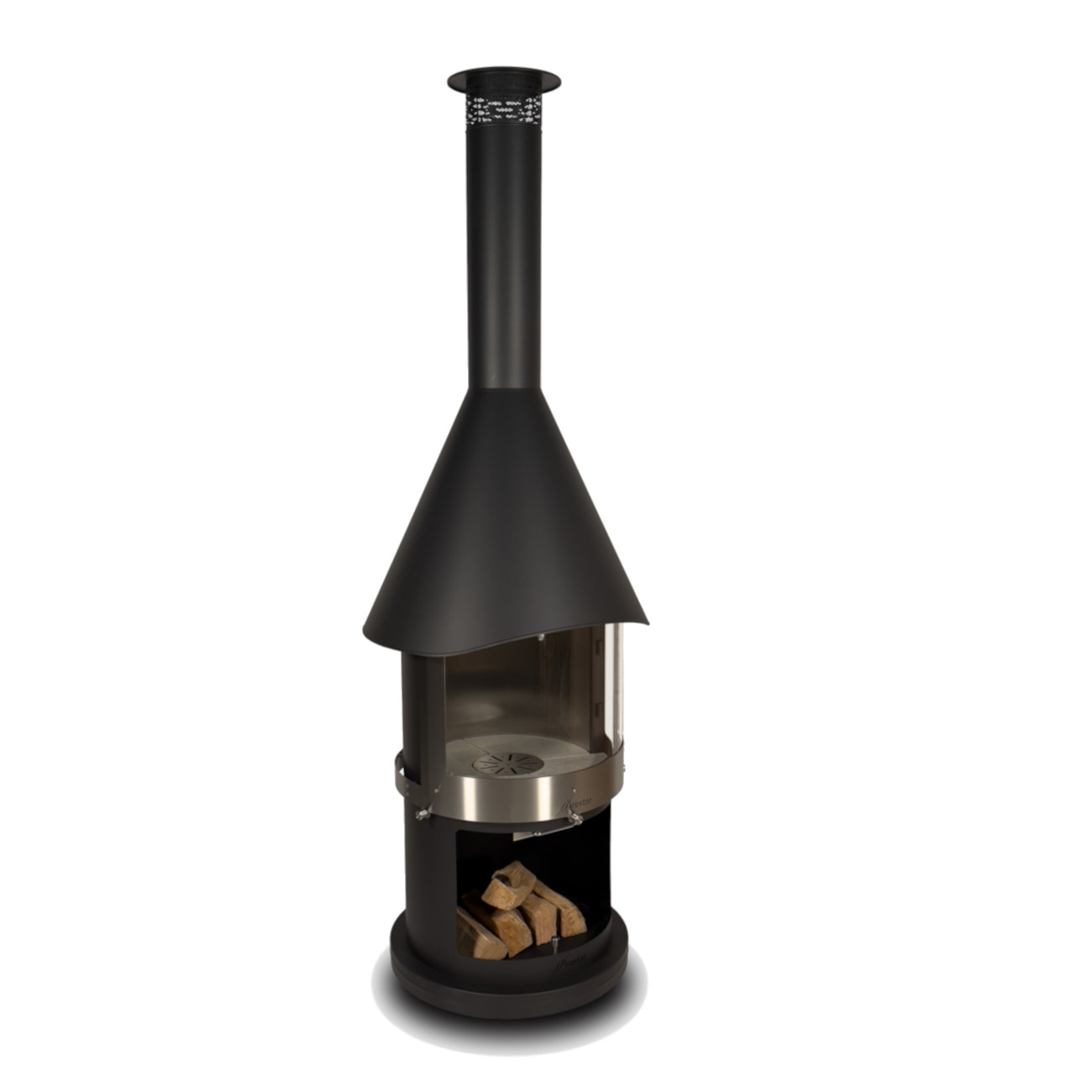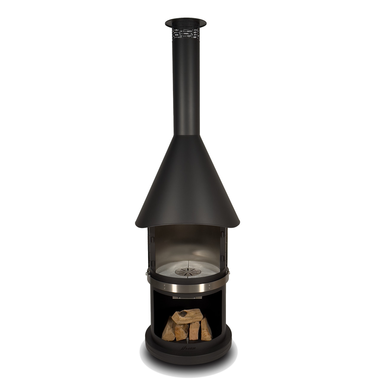 - Großer Edelstahl Gartenkamin mit Grillfunktion in Schwarz