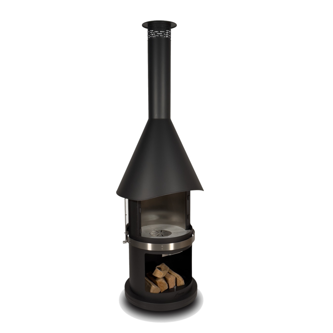 Dieser große Gartenkamin mit Grillfunktion ist nicht nur Wärmequelle, sondern das Zentrum Ihrer Outdoor-Küche.