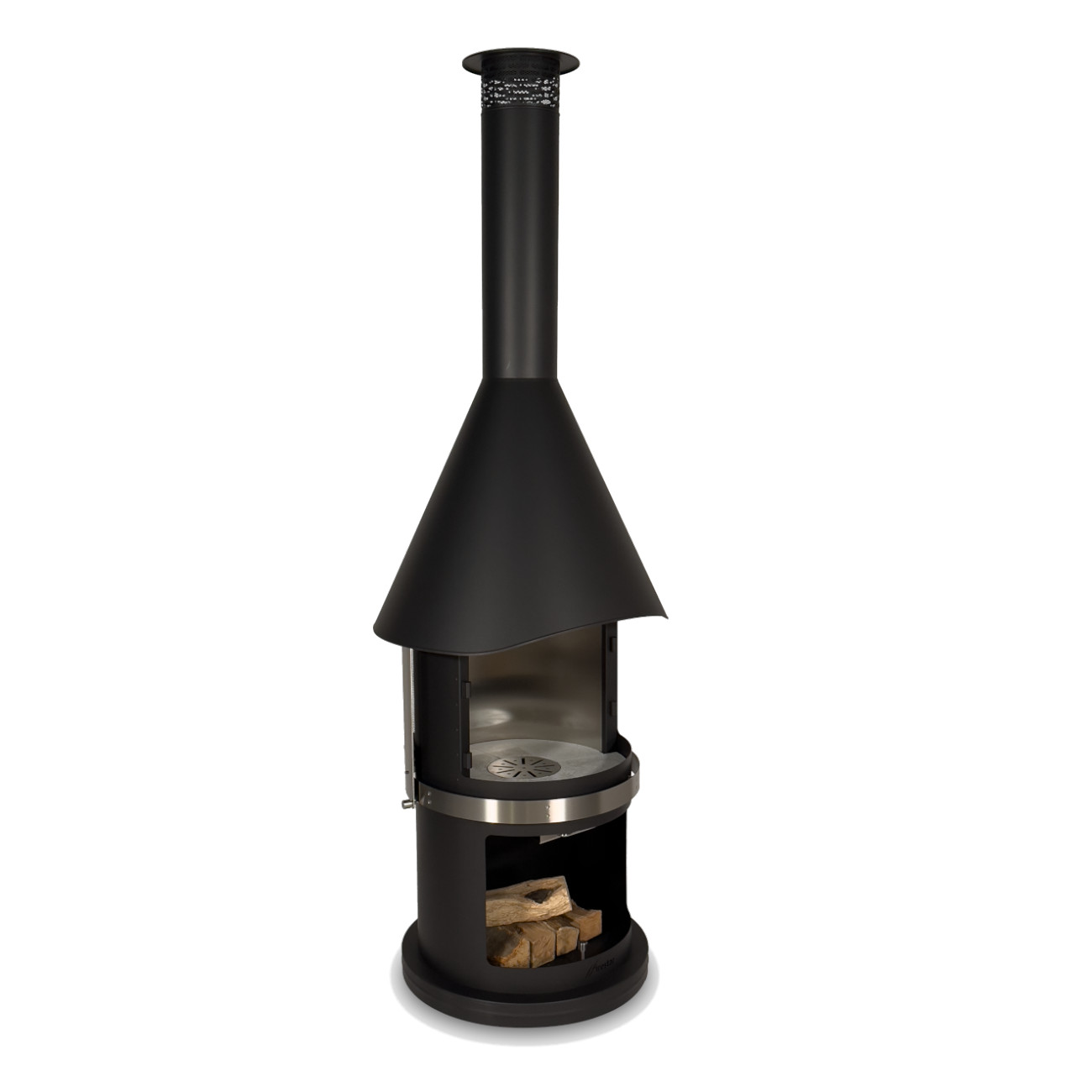 Dieser große Gartenkamin mit Grillfunktion ist nicht nur Wärmequelle, sondern das Zentrum Ihrer Outdoor-Küche.