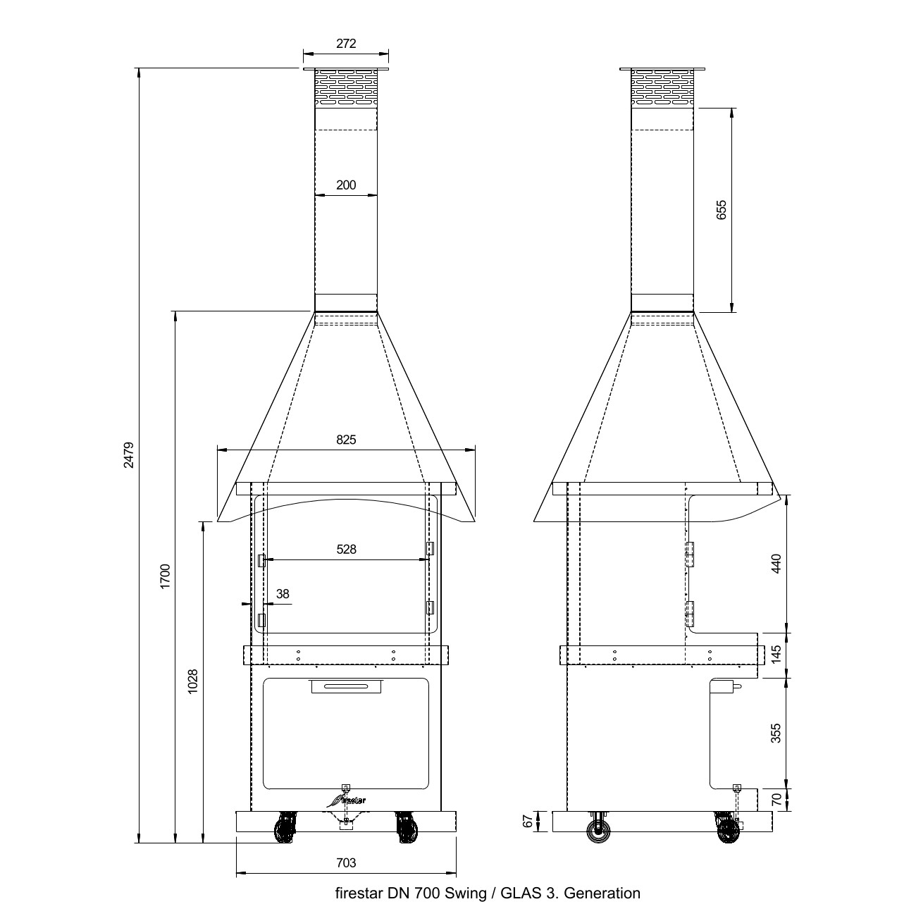 Firestar DN 700 Glas 3. Generation – Großer Edelstahl Gartenkamin & Grill in Schwarz Maximales Outdoor-Erlebnis für große Terrassen & Grill-Liebhaber Der Firestar DN 700 Glas der 3. Generation in Schwarz lackiert ist die perfekte Wahl für alle, die einen großen Gartenkamin mit Grillfunktion suchen. Mit einer Höhe von 247,9 cm und einem Durchmesser von 70,3 cm bietet dieses Modell extra viel Platz für Feuer, Wärme und Grillvergnügen. Ideal für große Terrassen, weitläufige Gärten und anspruchsvolle Grillfans, die Wert auf Leistung, Design und Qualität legen. Markenqualität von Firestar – Made in Germany Firestar steht für hochwertige Gartenkamine und Grillkamine aus Edelstahl mit klarer Formensprache, langlebigen Materialien und zeitlosem Design. Entwickelt und gefertigt in Hannover, überzeugen die Produkte durch höchste Qualität und durchdachte Konstruktion. Dieser große Gartenkamin mit Grillfunktion ist nicht nur Wärmequelle, sondern das Zentrum Ihrer Outdoor-Küche. Groß, stilvoll und besonders sicher Der Firestar DN 700 Glas Grillkamin beeindruckt durch seine Größe und sein modernes Design. Die 360° umlaufende Glaskeramik-Tür mit NeoClear®-Technologie sorgt für eine klare Panoramasicht auf das Feuer und ermöglicht gleichzeitig den sicheren Betrieb bei geschlossener Tür. Genießen Sie das Flammenspiel komfortabel und geschützt – maximale Feuersicht bei hoher Sicherheit. Die Regenhaube der 3. Generation schützt zuverlässig vor Witterungseinflüssen, während integrierte Ablauflöcher Staunässe verhindern. Eine verstärkte Drehfixierung sorgt für maximale Stabilität – auch bei intensiver Nutzung. Maximale Leistung & hochwertige Verarbeitung Gefertigt aus 100 % Edelstahl (V2A & V4A) und veredelt mit einer Schwarz Lackierung, überzeugt dieser Grillkamin für große Flächen durch extreme Langlebigkeit und Witterungsbeständigkeit. Der doppelwandig isolierte Brennraum sorgt für besonders hohe Temperaturen und eine effiziente Verbrennung – perfekt für intensives Grillen und langanhaltende Wärme. Perfekt für Grill & Outdoor-Küche Mit dem Edelstahl Grillrost (Ø 45 cm, Made in Germany) und der Fettschutzpfanne wird dieser Gartenkamin zum leistungsstarken Holzkohlegrill. Grillen Sie flexibel auf Holz, Grillkohle oder Briketts und genießen Sie authentisches BBQ auf höchstem Niveau. Dank modularem System erweitern Sie Ihren großen Gartenkamin Grill jederzeit mit Zubehör: Pizzastein, Gulaschtopf, Steakpfanne oder Grillspieße – für eine vollständige Outdoor-Küche im Garten. Flexibel, mobil und ganzjährig nutzbar Trotz seiner Größe bleibt der Kamin dank vier gummierter Rollen flexibel positionierbar. Der Gartenkamin ist temperaturschockresistent und für den ganzjährigen Einsatz geeignet – ob Sommergrillen oder Wintergrillen bei Minusgraden. Sicherheit & Umwelt 360° Glaskeramik-Tür: Sicherer Betrieb mit geschlossener Tür & volle Feuersicht NeoClear®-Technologie: Klare Sichtscheiben durch reduzierte Rußanhaftung Regenhaube mit Schutzfunktion Umweltfreundliche Lackierung: Wasserbasierter UHT-Lack mit geringer Geruchsbildung Produktmerkmale im Überblick Großer Edelstahl Gartenkamin mit Grillfunktion in Schwarz 360° Glaskeramik-Tür mit Panoramasicht NeoClear®-Technologie für klare Sicht 100 % Edelstahl (V2A & V4A) Grillen auf Holz, Holzkohle oder Briketts Doppelwandig isolierter Brennraum Feuerfester Betonboden (bis 1.000°C) Mobil auf 4 gummierten Rollen mit Drehfixierung Edelstahl-Reling zur Positionierung Doppelwandige Außenhaube Abzugsrohr mit Funkenflugschutz Inkl. Edelstahl Grillrost & Fettschutzpfanne Erweiterbar zur Outdoor-Küche Ganzjährig nutzbar (Wintergrillen geeignet) Schneller Aufbau (ca. 10–15 Minuten) Made in Germany Technische Daten Modell: DN 700 Glas 3. Generation Farbe: Schwarz lackiert Höhe: 247,9 cm Durchmesser: 70,3 cm Grillrost: Ø 45,0 cm Brennraum: Ø 52,80 cm Außenmaß: Ø 82,5 cm Gewicht: 85 kg Optionales Zubehör & Erweiterungen Schutzblech für Holzlagerung (Edelstahl gebürstet) Schutzhaube mit Reißverschluss und Kordel Einhängetisch (28 x 30 cm) Schornsteinverlängerung (50 cm / 100 cm) Passgenaue Edelstahl-Vorlegeplatten Umfangreiche Auswahl an Zubehör und Erweiterungen Individuelle Einbau- & Erweiterungsmöglichkeiten Ein Einbau mit Rauchrohren und entsprechender Rauchrohrführung über Terrassen- oder Wintergartendächer ist möglich. Sprechen Sie uns gerne an – wir stellen Ihnen die passenden Komponenten individuell zusammen. Der Firestar DN 700 Glas Gartenkamin & Grill in Schwarz ist die ideale Wahl für anspruchsvolle Grillfans und große Outdoor-Bereiche. Maximale Leistung trifft auf exklusives Design – für unvergessliche Momente im Garten.