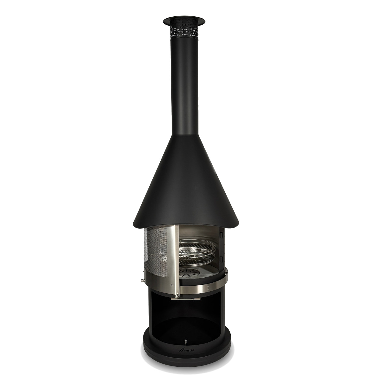 - Großer Edelstahl Gartenkamin mit Grillfunktion in Schwarz