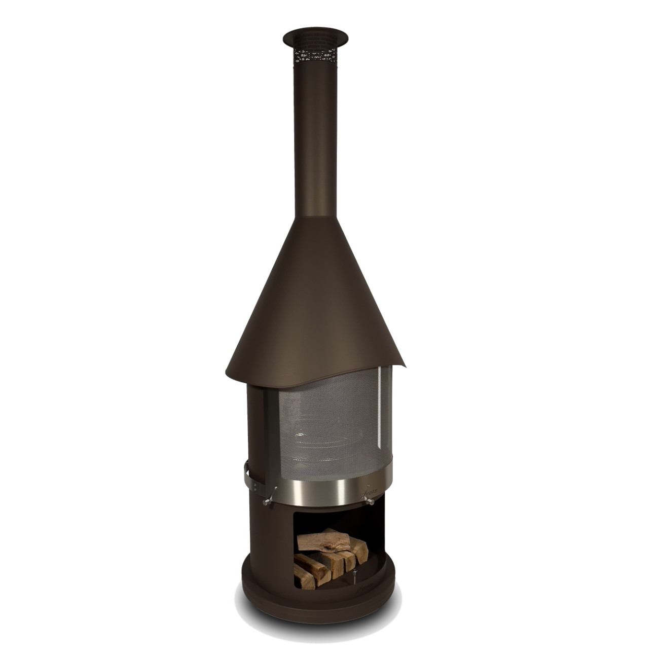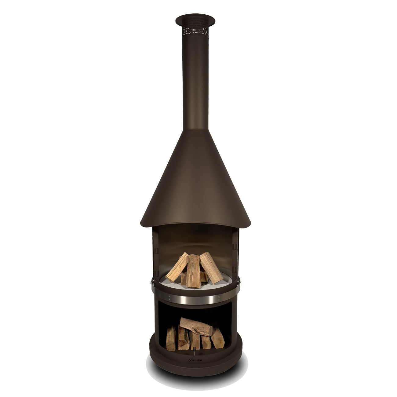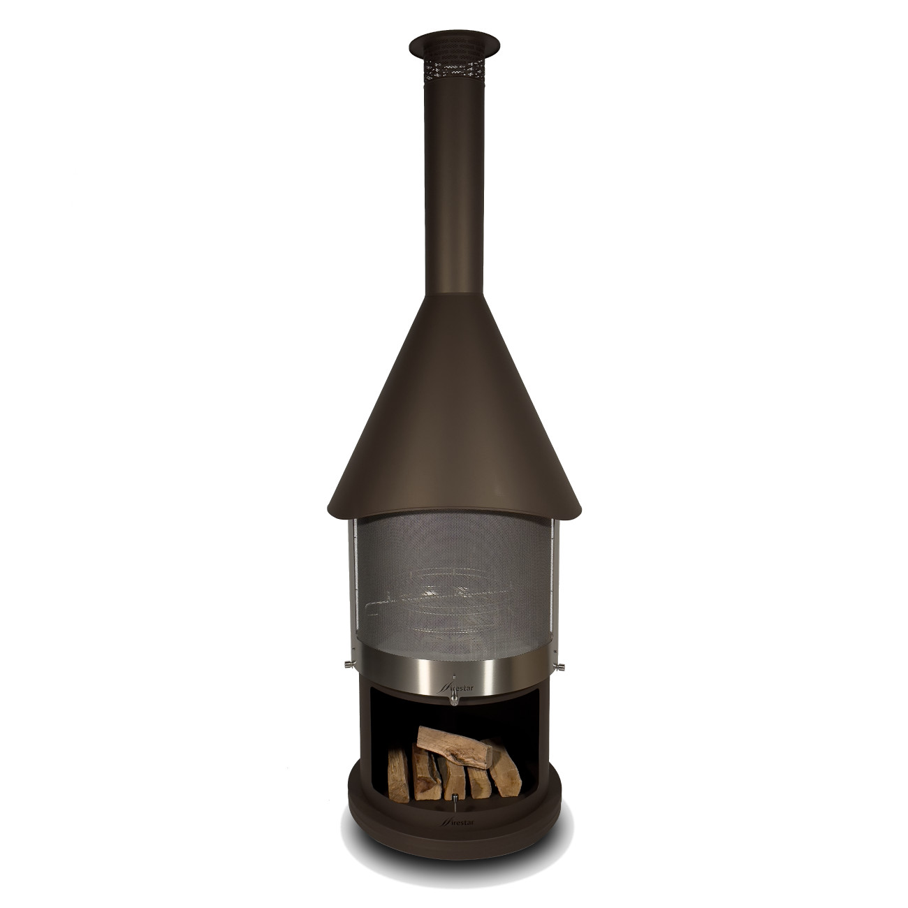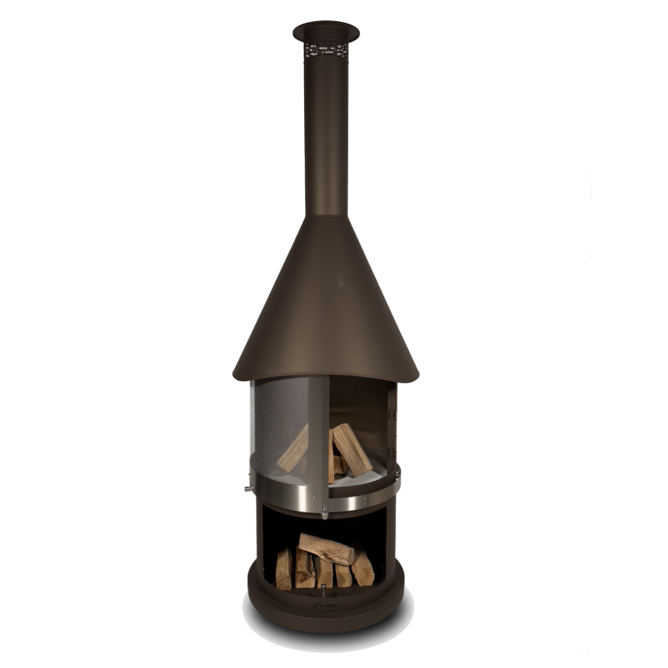 Der Firestar DN800 Mesh Grillkamin beeindruckt durch seine außergewöhnliche Dimension und die hochwertige Verarbeitung aus lackiertem Edelstahl (V2A & V4A) in Braun Metallic.