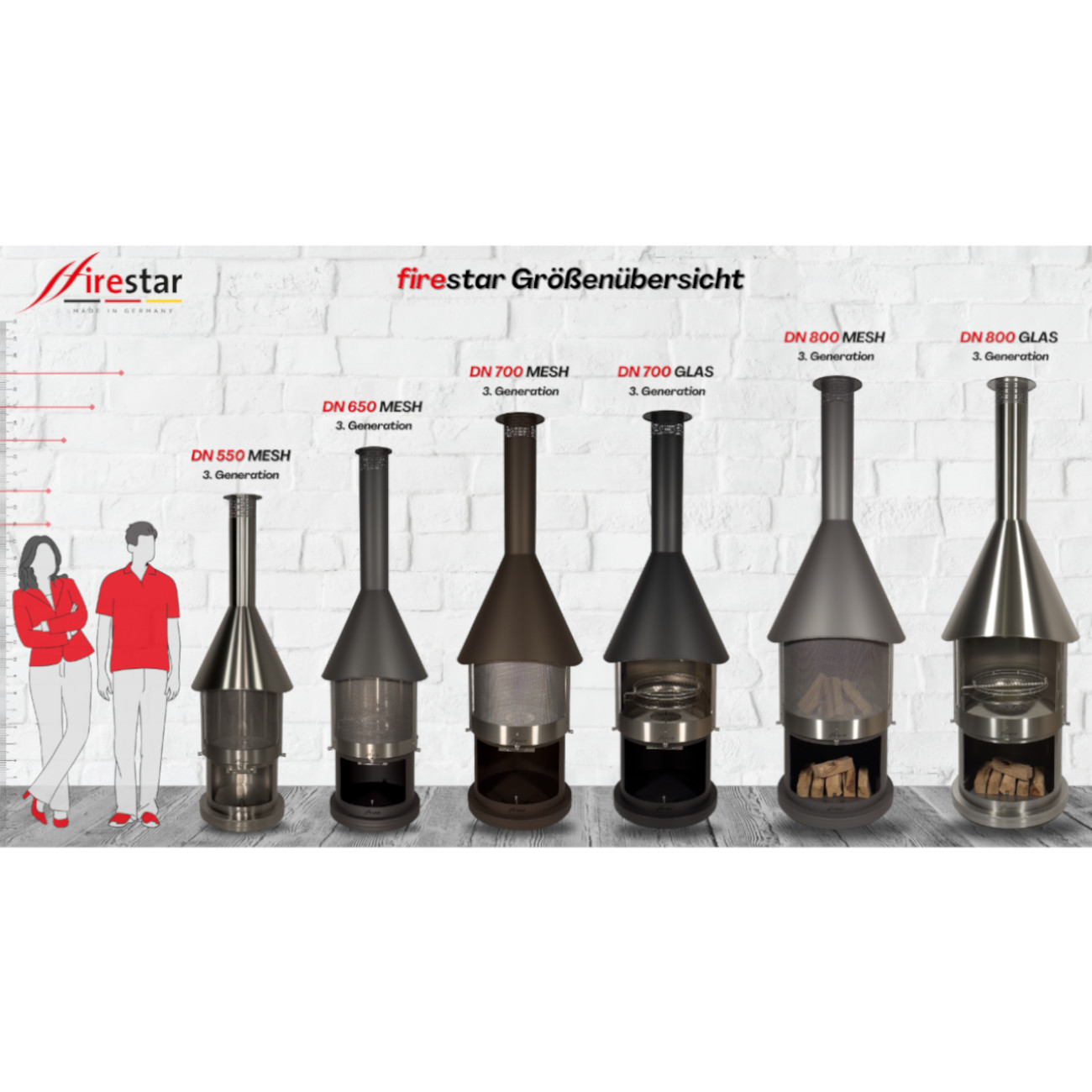 - Größtes Firestar Gartenkamin Modell (DN800 Mesh)