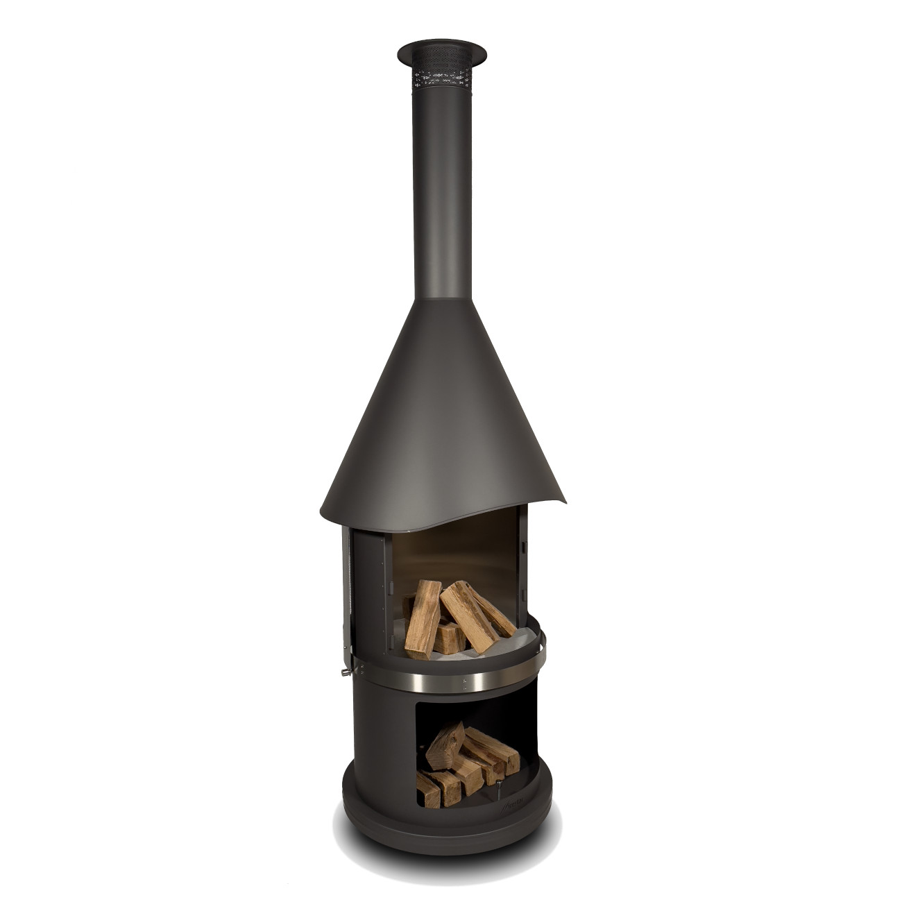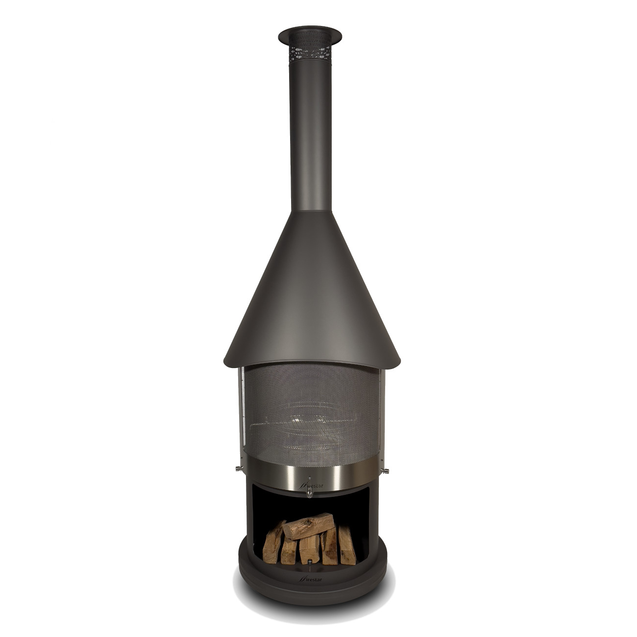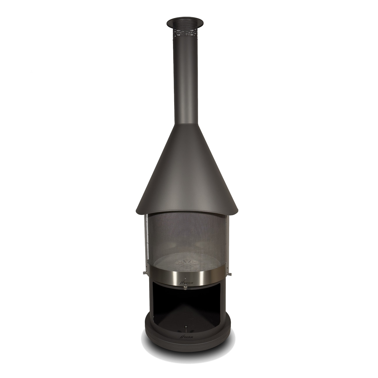 Der Firestar DN800 Mesh Grillkamin beeindruckt durch seine außergewöhnliche Dimension und die hochwertige Verarbeitung aus lackiertem Edelstahl (V2A & V4A) in Dunkelgrau.