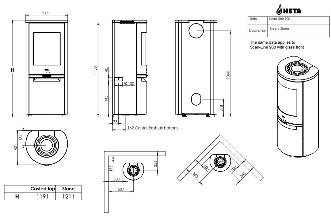 Der Scan-Line 900 ist kein gewöhnlicher Kaminofen. Mit seiner beeindruckend selbstschließenden Tür, der großen Sichtscheibe sowie der einfachen Luftsteuerung, können Sie das Flammenspiel innerhalb der großen Brennkammer sehr schön genießen. Der 900er ist ein moderner Kaminofen mit der ganzen HETA-Tradition und Erfahrung. Als komfortables Feature verfügt dieser Ofen über einen großen 5-Liter Aschekasten, der das Leeren zu einer Seltenheit macht sowie einem 3-teiligen Kaminbesteck, welches in der Tür unterhalb der Brennkammer integriert ist.