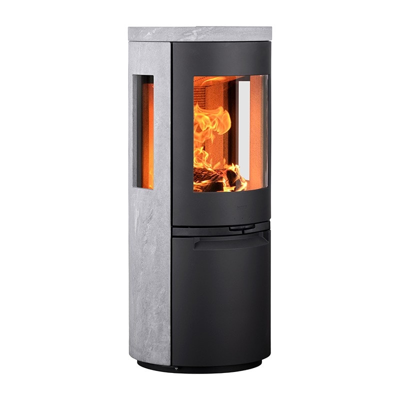 HETA Kaminöfen bestehen aus schwarzem, mattem Qualitätsstahl und können mit Emaille oder Keramik in verschiedenen Farben, Speckstein, Sandstein oder Granit kombiniert werden. So passt sich der Kaminofen perfekt an Ihren Wohnstil an.