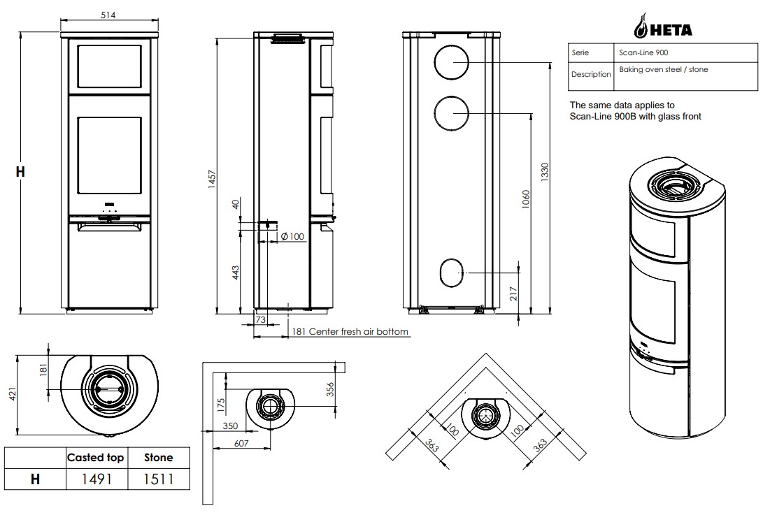 Mit dem HETA Scan-Line 900B sowie dem 900B mit Seitenscheiben, können Sie in gemütlich warmer Atmosphäre entspannen und gleichzeitig Ihre Lieblingsgerichte im Backofen zubereiten. Für eine hohe Funktionalität dieses großen Backofens lassen sich das Grillrost oder auch ein optional erhältliches Backblech in verschiedenen Höhen positionieren. Als einzigartige Funktion der HETA-Öfen, verfügt dieser Backofen über einen Dunstabzug, sodass auf Wunsch Gargerüche über den Schornstein abgeführt werden können, somit haben Sie sogar die Möglichkeit die Feuchtigkeitssituation in Ihrem Backofen zu regulieren, was die Zubereitung Ihrer Lieblingsspeisen noch komfortabler und schmackhafter macht.