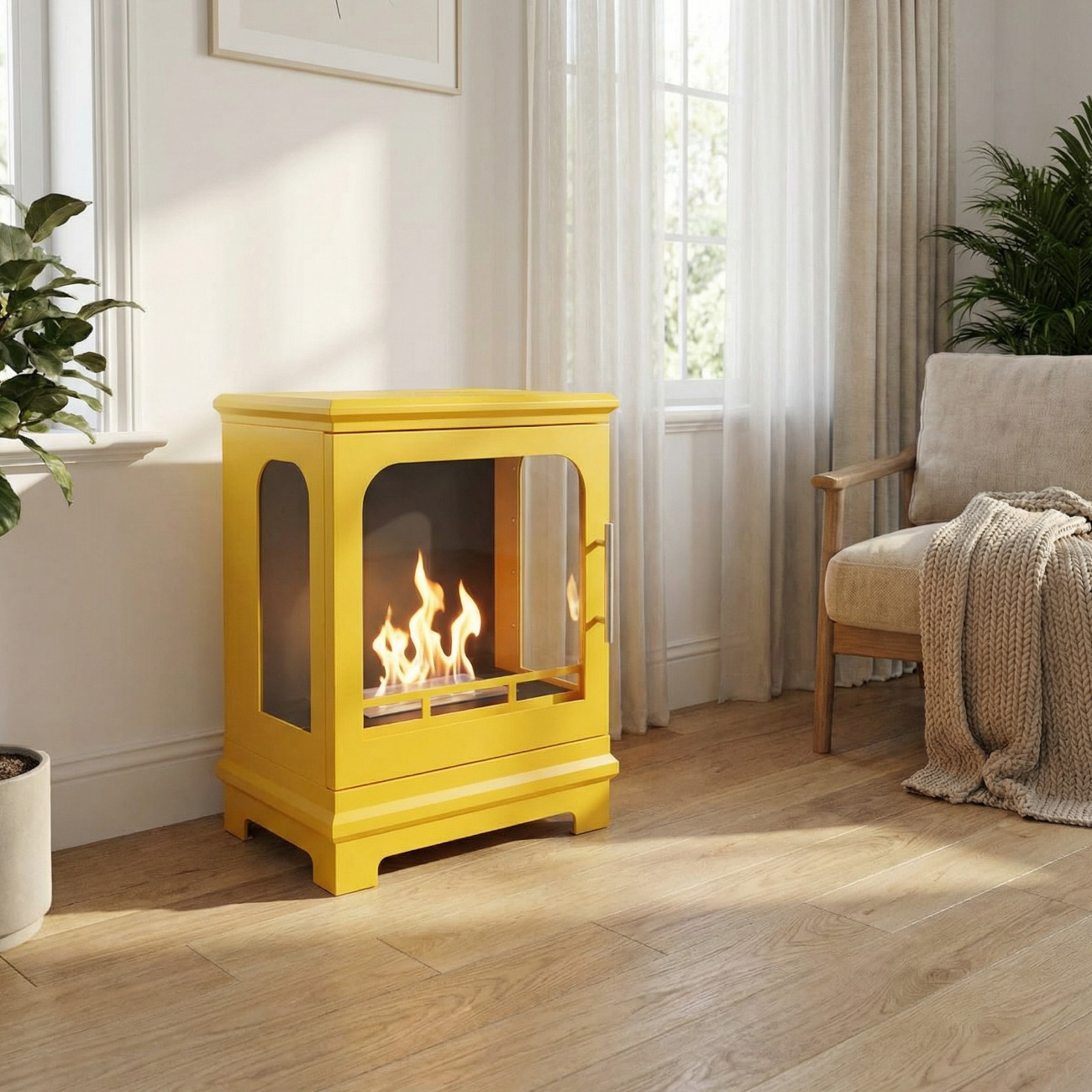 Honolulu Gelb – freistehender Bioethanol Kaminofen im klassischen Holzofen-Design