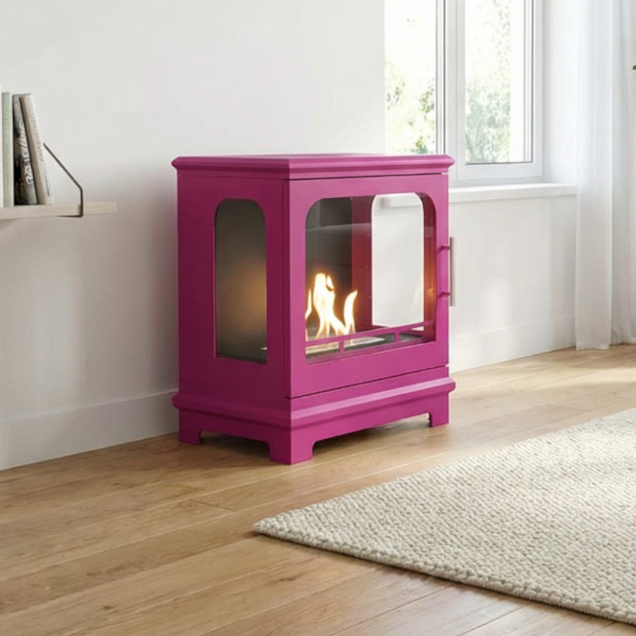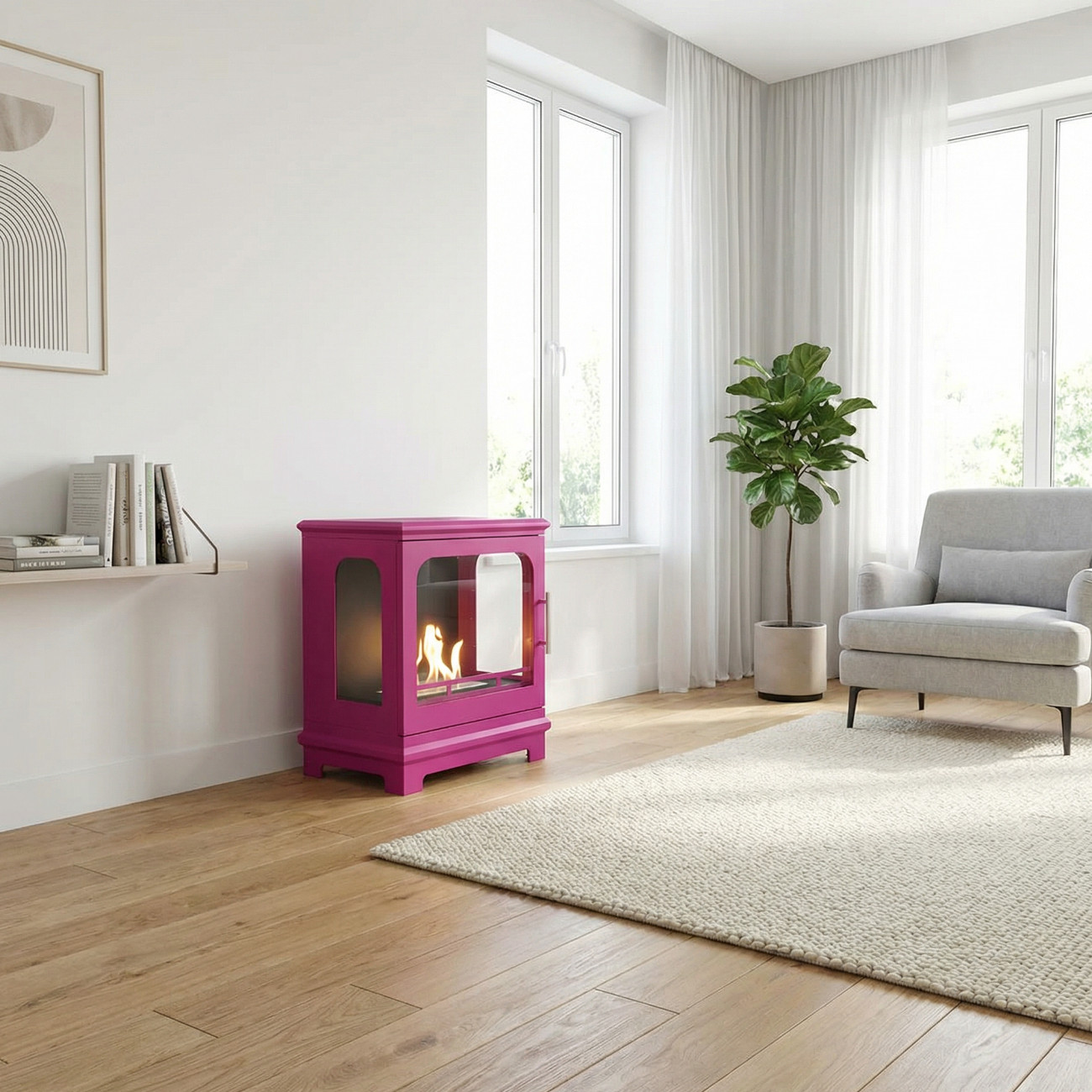 Honolulu Pink (Telemagenta) – freistehender Bioethanol Kaminofen im klassischen Holzofen-Design
