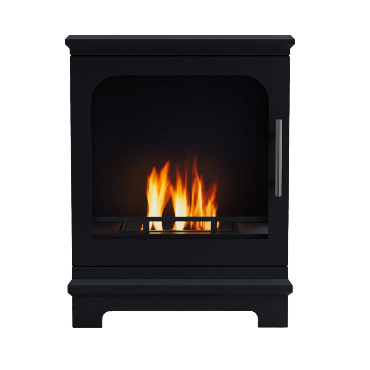 Honolulu Schwarz – freistehender Bioethanol Kaminofen im klassischen Holzofen-Design