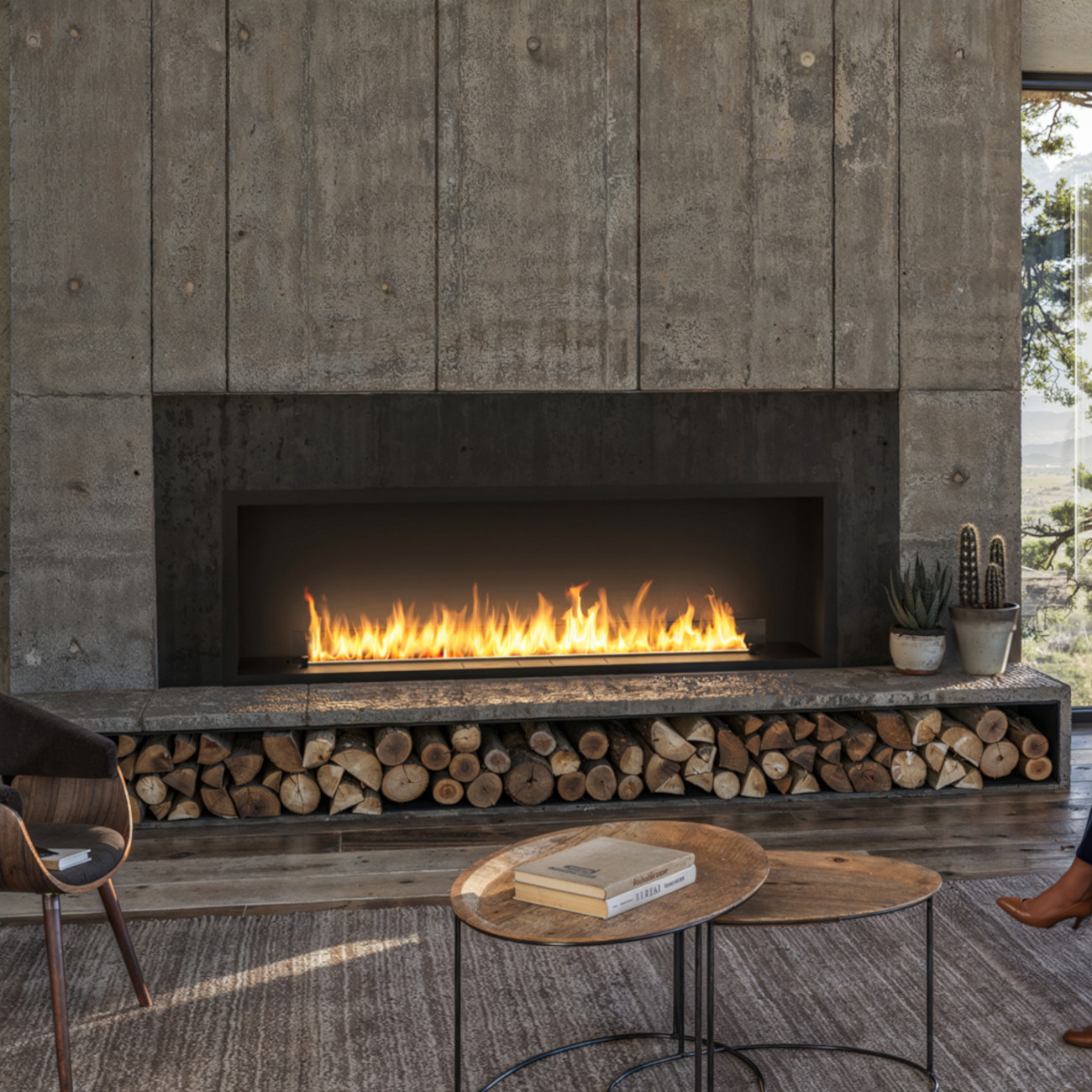 Das Modell wurde für den festen Einbau in Wände, Möbelkonstruktionen oder maßgefertigte Kaminanlagen entwickelt. Der integrierte Rahmen definiert die Kaminöffnung klar, unterstreicht die außergewöhnliche Feuerbreite und sorgt – unabhängig von der Einbausituation – für ein hochwertiges, architektonisch ruhiges Gesamtbild.