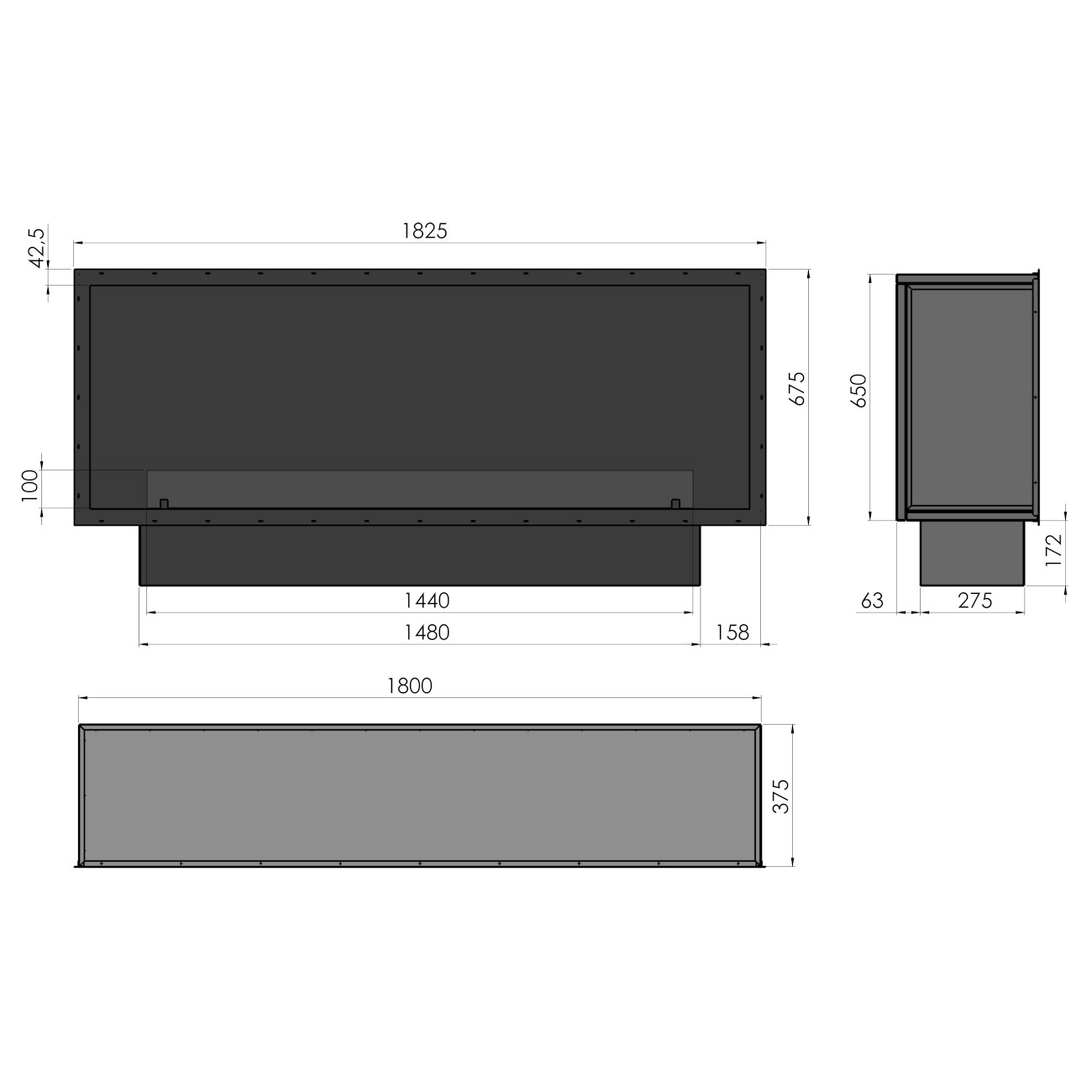 - Maße Kaminkassette: 1825 x 675 x 375 mm (B x H x T)