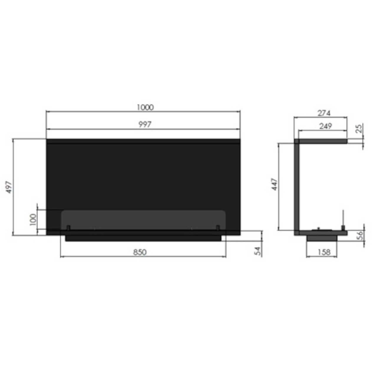 ✅ InFire C1000 2.0 Ethanol Einbaukassette (mit Blendrahmen)