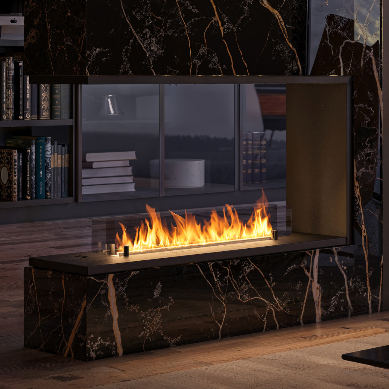 Die 3-seitige, U-förmige Panorama-Ausführung zieht das Feuer förmlich in den Raum hinein. Als Raumtrenner eingesetzt bleibt der Blick durch den Raum erhalten, während das Flammenspiel Struktur, Wärme und Atmosphäre schafft. Mit einer 600 mm langen Feuerlinie erzeugt die INSIDE U1000 ein ruhiges, gleichmäßiges Flammenbild, das den Raum dezent, aber wirkungsvoll aufwertet – ideal für moderne Wohn- und Designkonzepte.