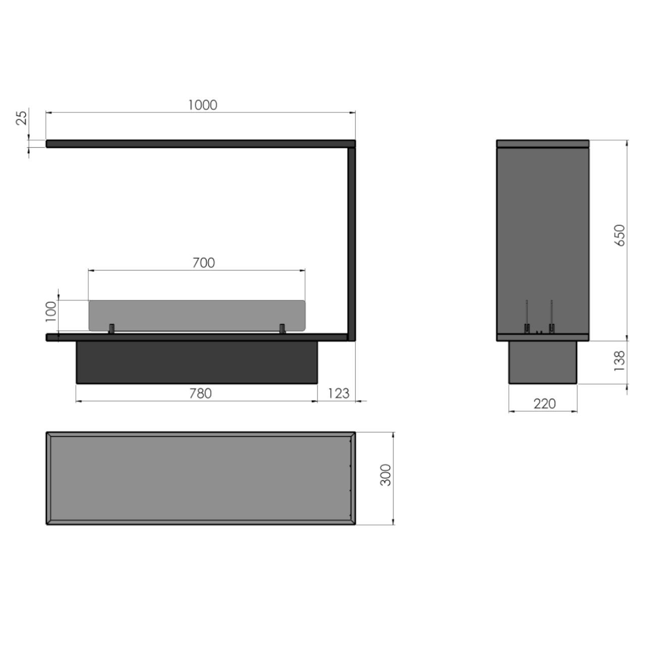 - Maße Kaminkassette: 1000 x 788 x 300 mm (B x H x T)