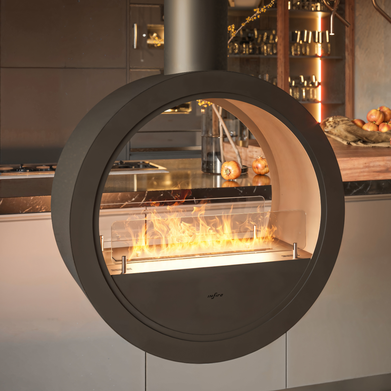 InFire Incyrcle 2Side – Der hängende Designer-Kamin mit Tunnel-Durchsicht