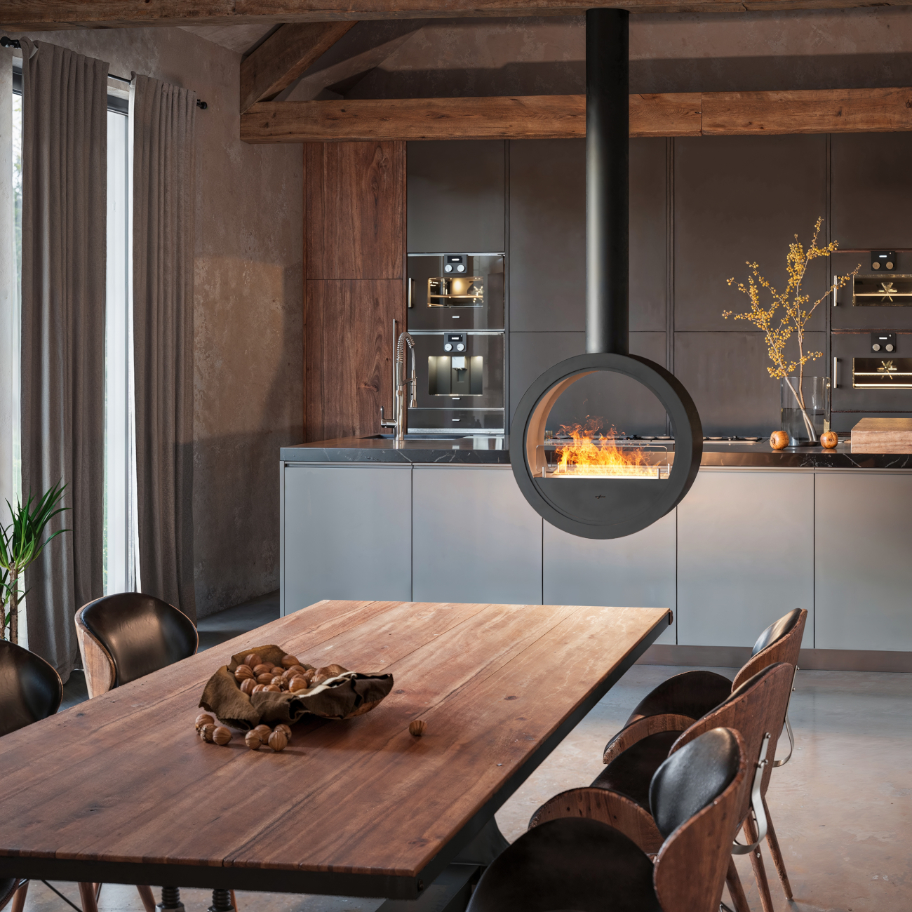Der Kamin INCYRCLE 2SIDE ist ein exklusiver, hängender Tunnel-Ethanolkamin, der an der Decke montiert wird. Der Ethanolkamin ist eine exklusive Variante des beliebten hängenden Ethanolkamin Incyrcle und bietet eine Tunnel-Durchsicht, sodass das Feuer von beiden Seiten sichtbar ist. Seine einzigartige Form macht ihn zu einem echten Blickfang und verleiht jedem Innenraum eine besondere Atmosphäre – perfekt für moderne Wohnräume, Lofts oder gewerblich genutzte Flächen wie Hotels oder Restaurants. Seine offene beidseitige Gestaltung macht ihn ideal als stilvollen Raumtrenner, der Atmosphäre und Eleganz vereint.