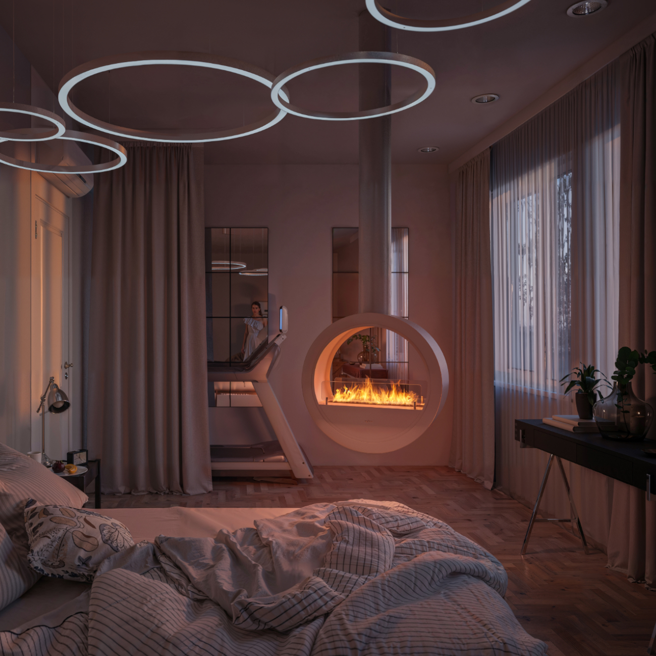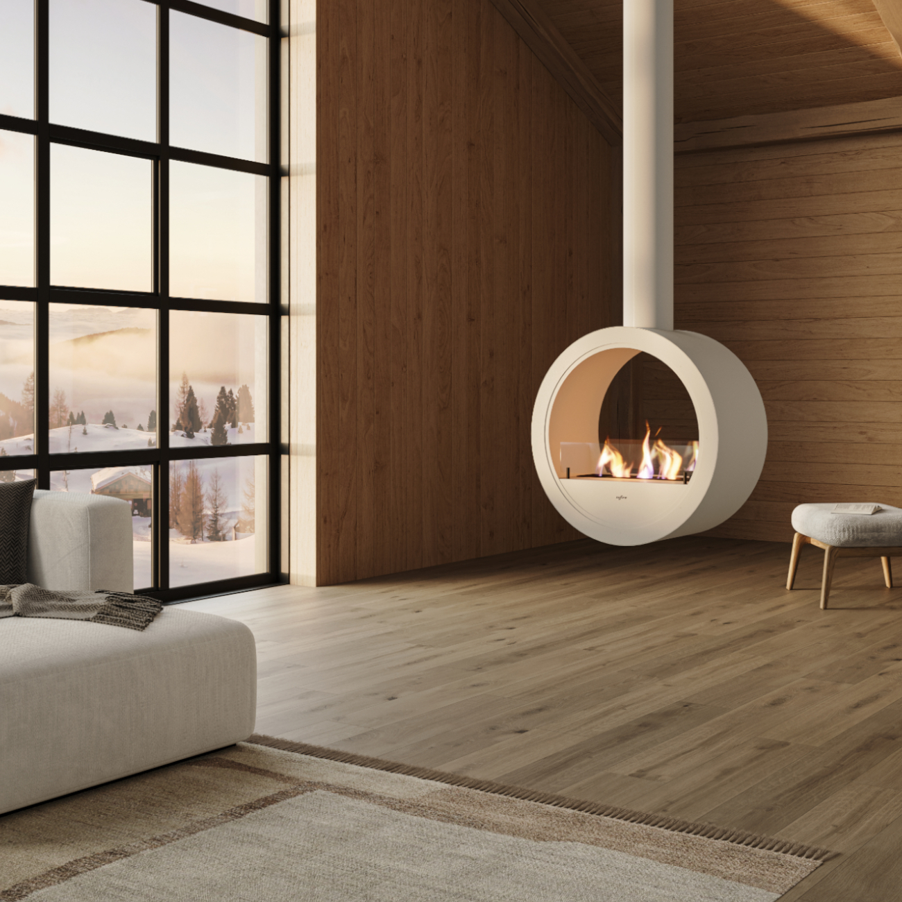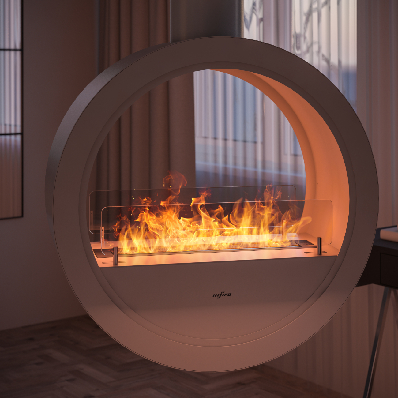 Der Kamin INCYRCLE 2SIDE ist ein exklusiver, hängender Tunnel-Ethanolkamin, der an der Decke montiert wird. Der Ethanolkamin ist eine exklusive Variante des beliebten hängenden Ethanolkamin Incyrcle und bietet eine Tunnel-Durchsicht, sodass das Feuer von beiden Seiten sichtbar ist. Seine einzigartige Form macht ihn zu einem echten Blickfang und verleiht jedem Innenraum eine besondere Atmosphäre – perfekt für moderne Wohnräume, Lofts oder gewerblich genutzte Flächen wie Hotels oder Restaurants. Seine offene beidseitige Gestaltung macht ihn ideal als stilvollen Raumtrenner, der Atmosphäre und Eleganz vereint.