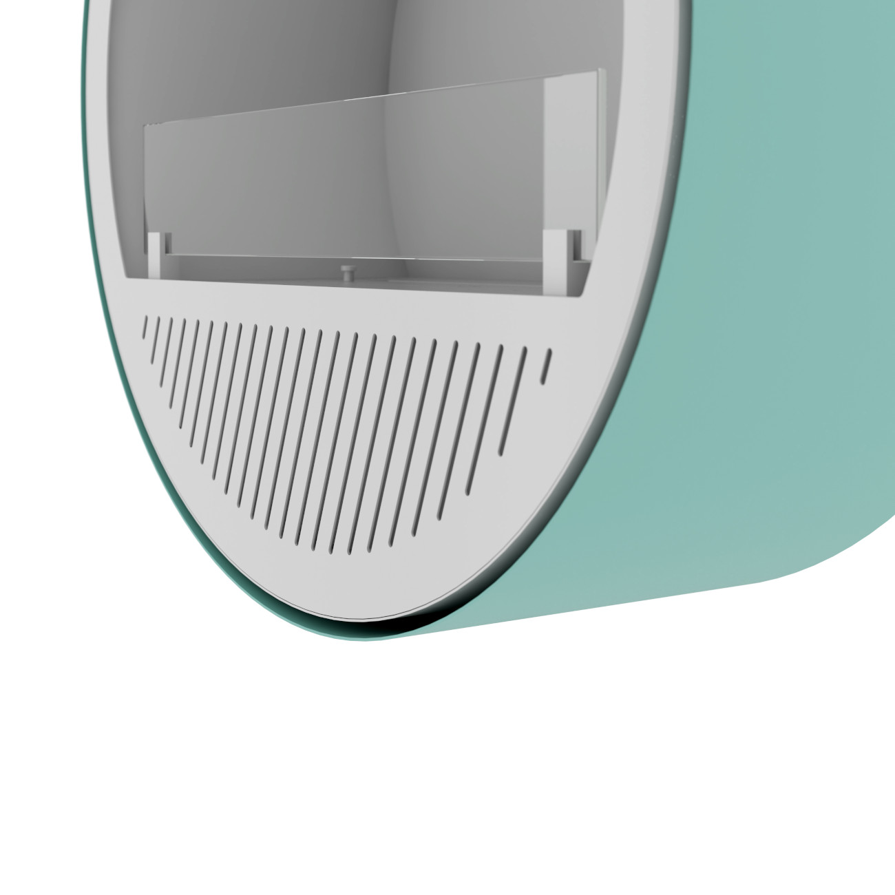 - Farbe: Minze außen / Weiß innen (Brennkammer & Front weiß, Außenkörper mintgrün)