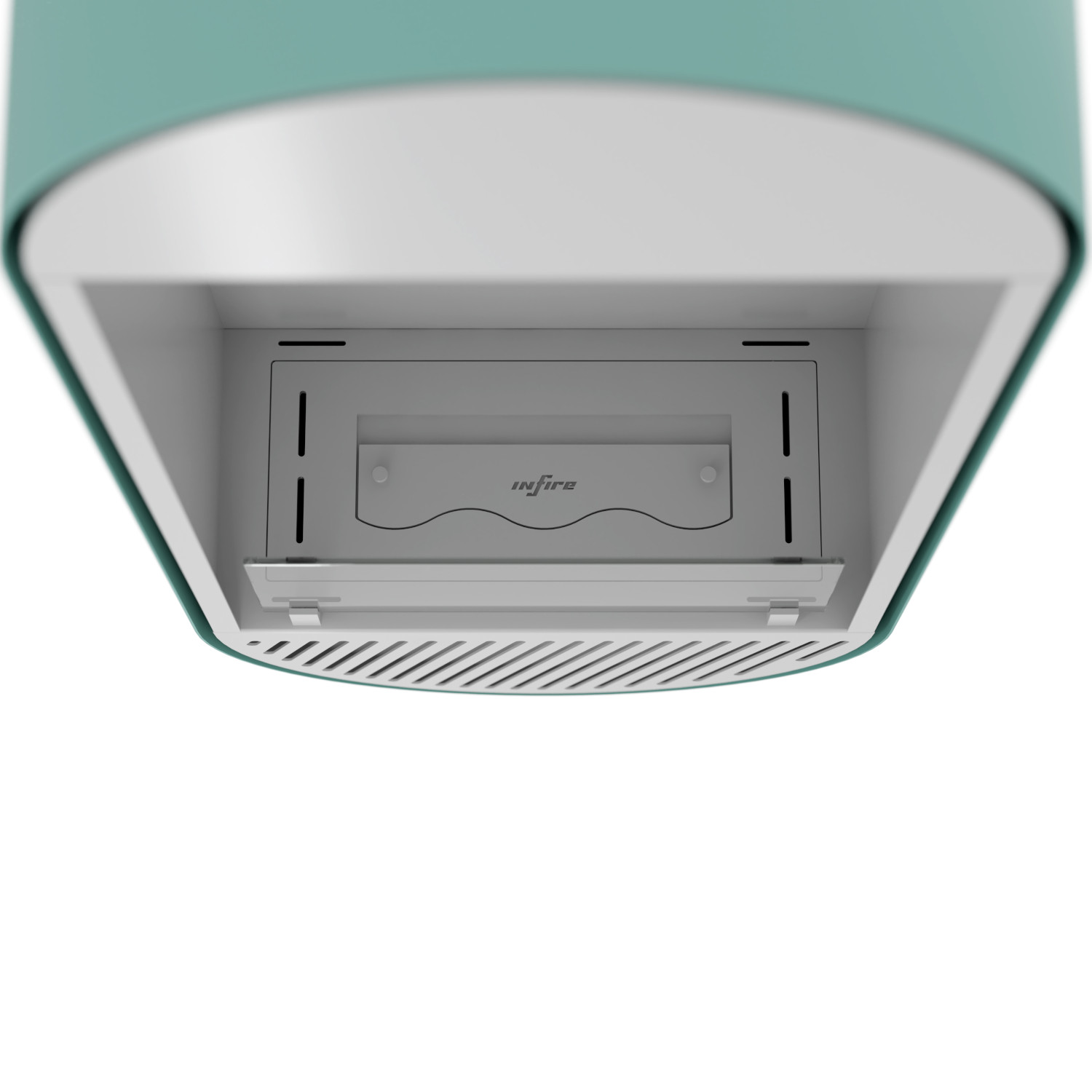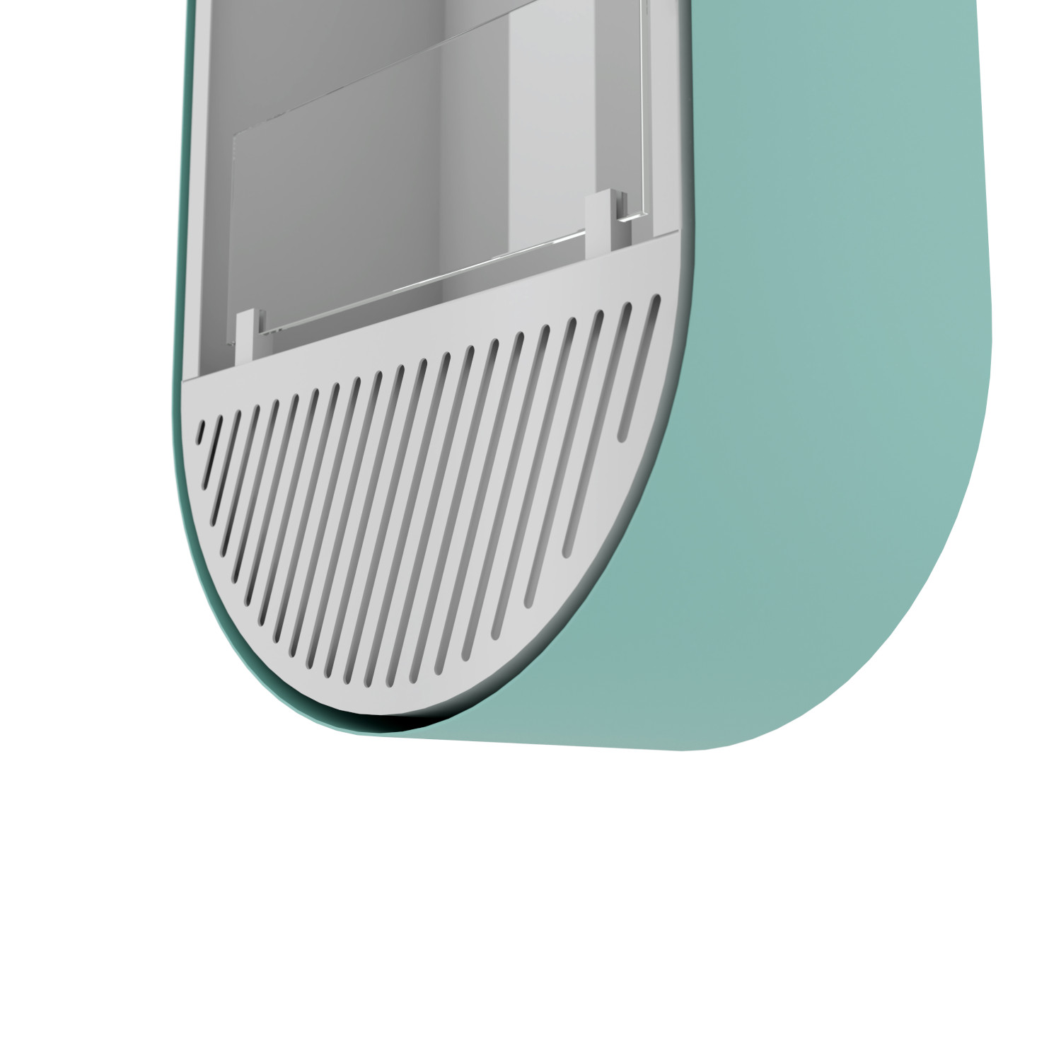 - Farbe: Minze außen / Weiß innen (Brennkammer & Front weiß, Außenkörper mintgrün)