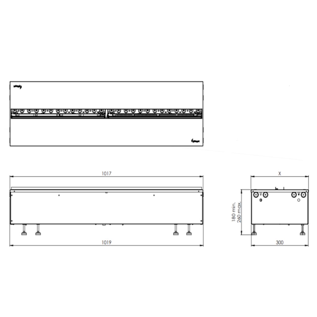📏 Abmessungen: 1019 mm x 300 mm x 180-260 mm (B x T x H)
