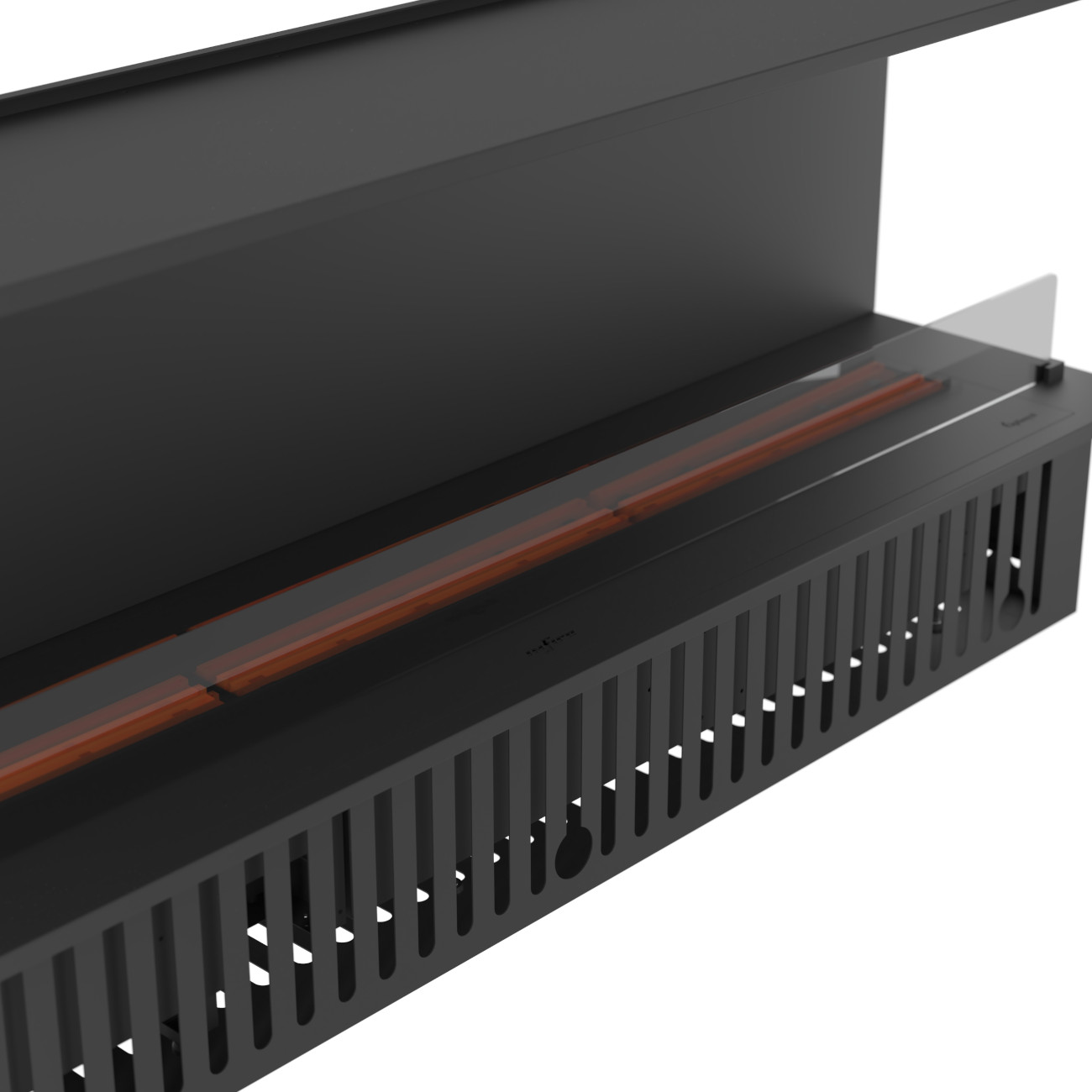 Die Invapo Inside C1800 wurde für großflächige und besonders hochwertige Kaminprojekte entwickelt. Dank der C-förmigen Bauweise bietet diese Kaminkassette eine beeindruckende Panorama-Feueransicht von drei Seiten. Durch die Kombination mehrerer Kassetten entsteht ein durchgehendes, besonders realistisches Flammenbild über die gesamte Breite.